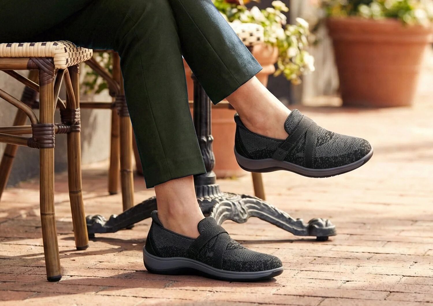 Stay happy on-your feet in these therapeutic slip-ons, with the relaxed fit of breathable, stretchable fabric, plus an adjustable inset strap. Amalya's seam-free interior prevents irritations, while the orthotic insole and wide toe box create a healthy, supported foundation for long, pain-free days. A mild-rocker outsole takes the impact and effort out of every step.