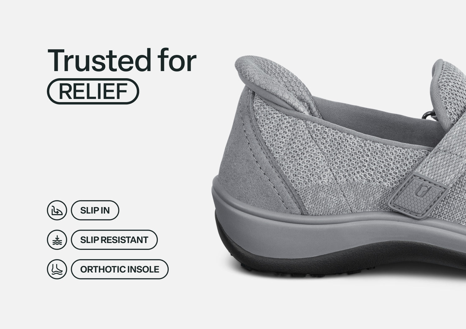 Stay happy on-your feet in these therapeutic slip-ons, with the relaxed fit of breathable, stretchable fabric, plus an adjustable inset strap. Amalya's seam-free interior prevents irritations, while the orthotic insole and wide toe box create a healthy, supported foundation for long, pain-free days. A mild-rocker outsole takes the impact and effort out of every step.