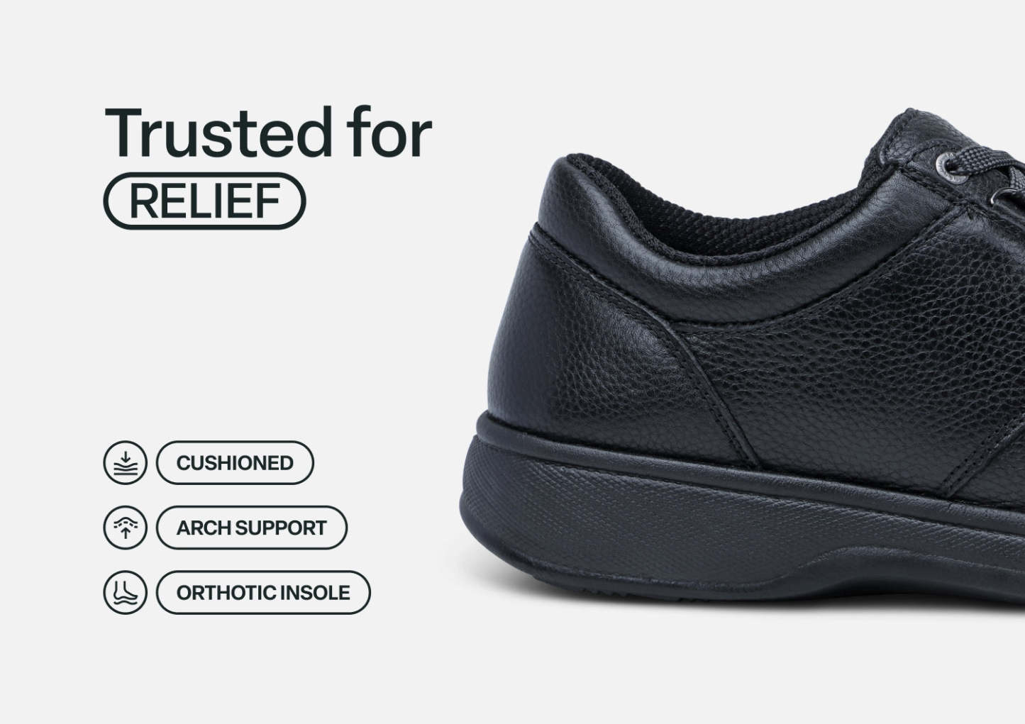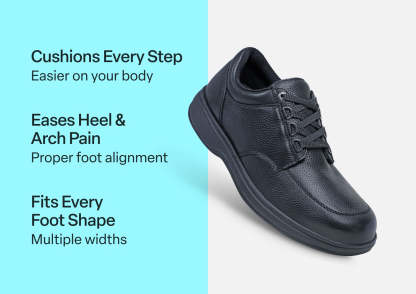 Tailored in supple and easy-to-clean full grain leather, Avery Island is a favorite for everyday versatility. Go farther in pain-free Ortho-Cushion™ System walking support and protection that's far from ordinary for any foot condition. Five available widths and a padded interior that offers extra depth and a wide toe box, ensure a customizable fit that extends all-day touring comfort.