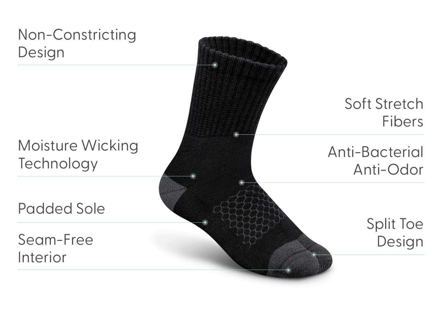 DryPlexTM Moisture Wicking System - Keeps feet always dry and comfortable, providing a healthier environment for sensitive feet.