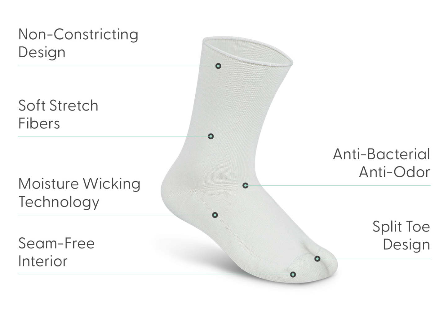 Orthofeet Bunion Relief socks are uniquely designed with Split-Toe construction. The stitched seam separates the big toe from the rest of the digits, promotes natural alignment, relieves pressure and prevents friction & toe overlap.