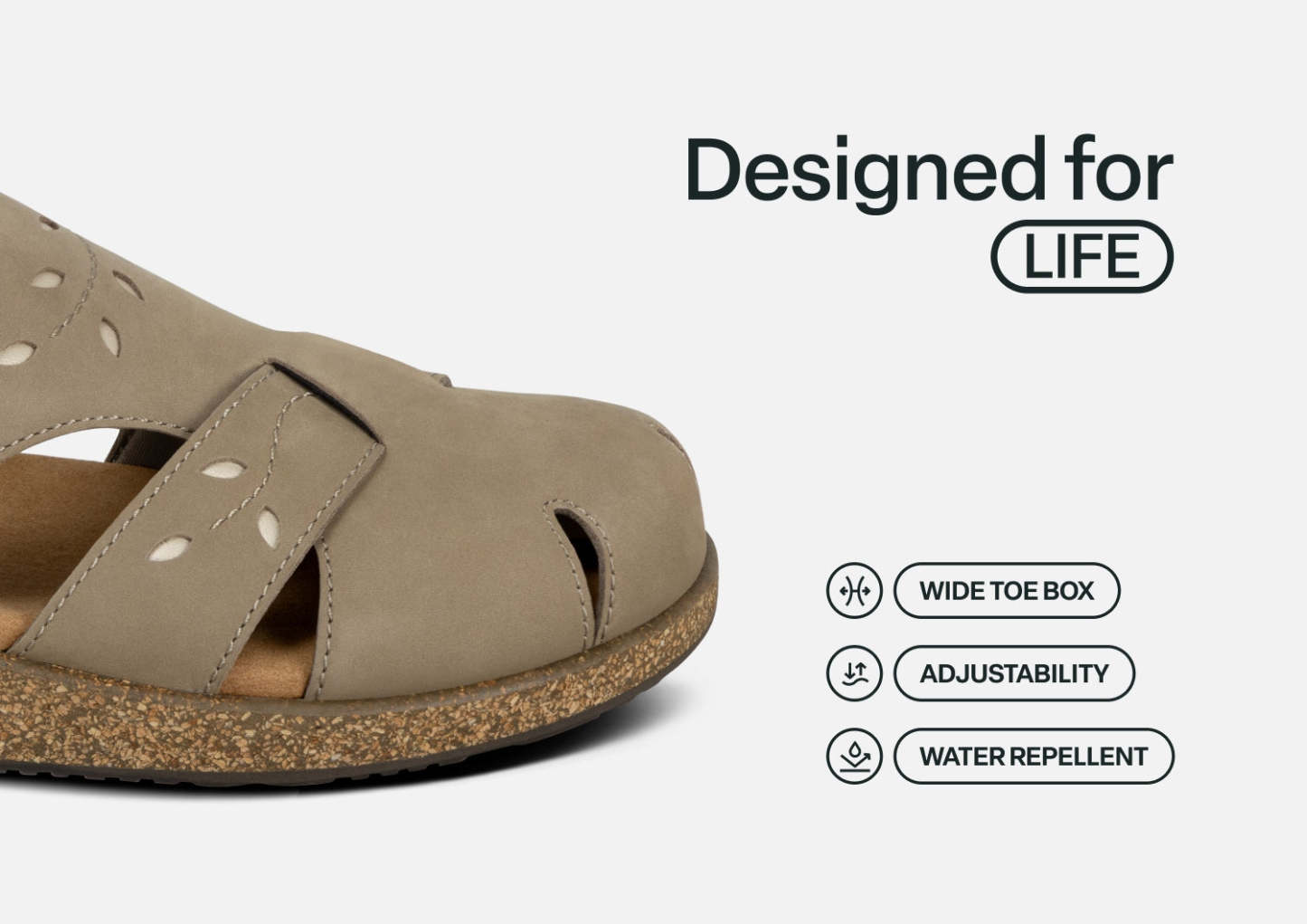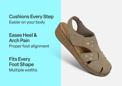 Closed-toe coverage meets breezy sandal style, with a cork blend sole that elevates your look and your comfort. Crafted with Orthofeet’s Ortho-Cushion™ System, it’s built for sensitive feet and dressed-up days alike. Adjustable leather straps fine-tune your fit for effortless support wherever the day takes you, from casual strolls to sunset dinners.