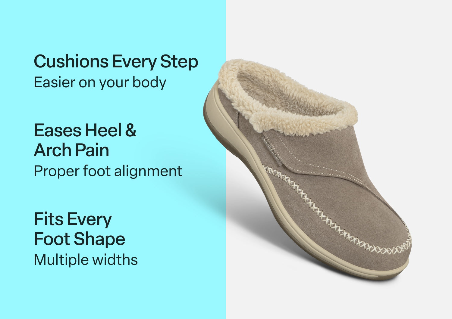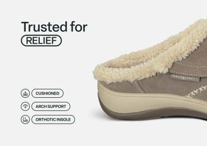 The adjustable side strap on this suede slip-on slipper opens wide to welcome feet into faux fur-lined luxury, with a heel lip that helps keep them on. Under the cozy warmth is full-foot cushioning and pain-relieving support of the Ortho-Cushion™ System. Charlotte's roomy toe box keeps the pressure off sensitive conditions and allows feet to move freely, all around the house.