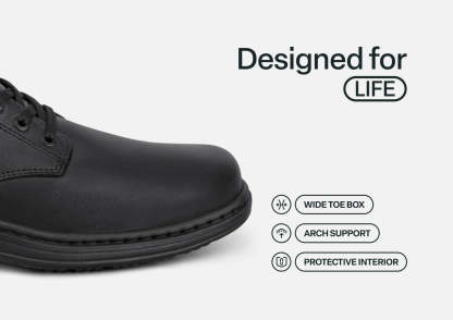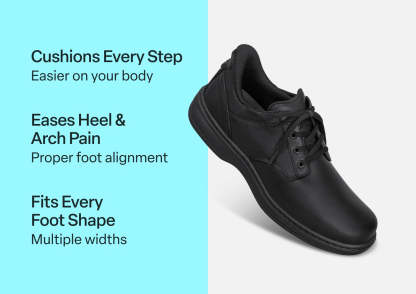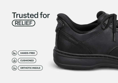 Claude is your all-occasion ally for on-the-go comfort. Step into a secure, pressure-free fit without bending or tying with our leading hands-free design. A soft leather upper and smooth protective interior ensure feet of all types have healthy room to move without binding. Take long days in stride with advanced Ortho-Cushion™ System support and cushioning.