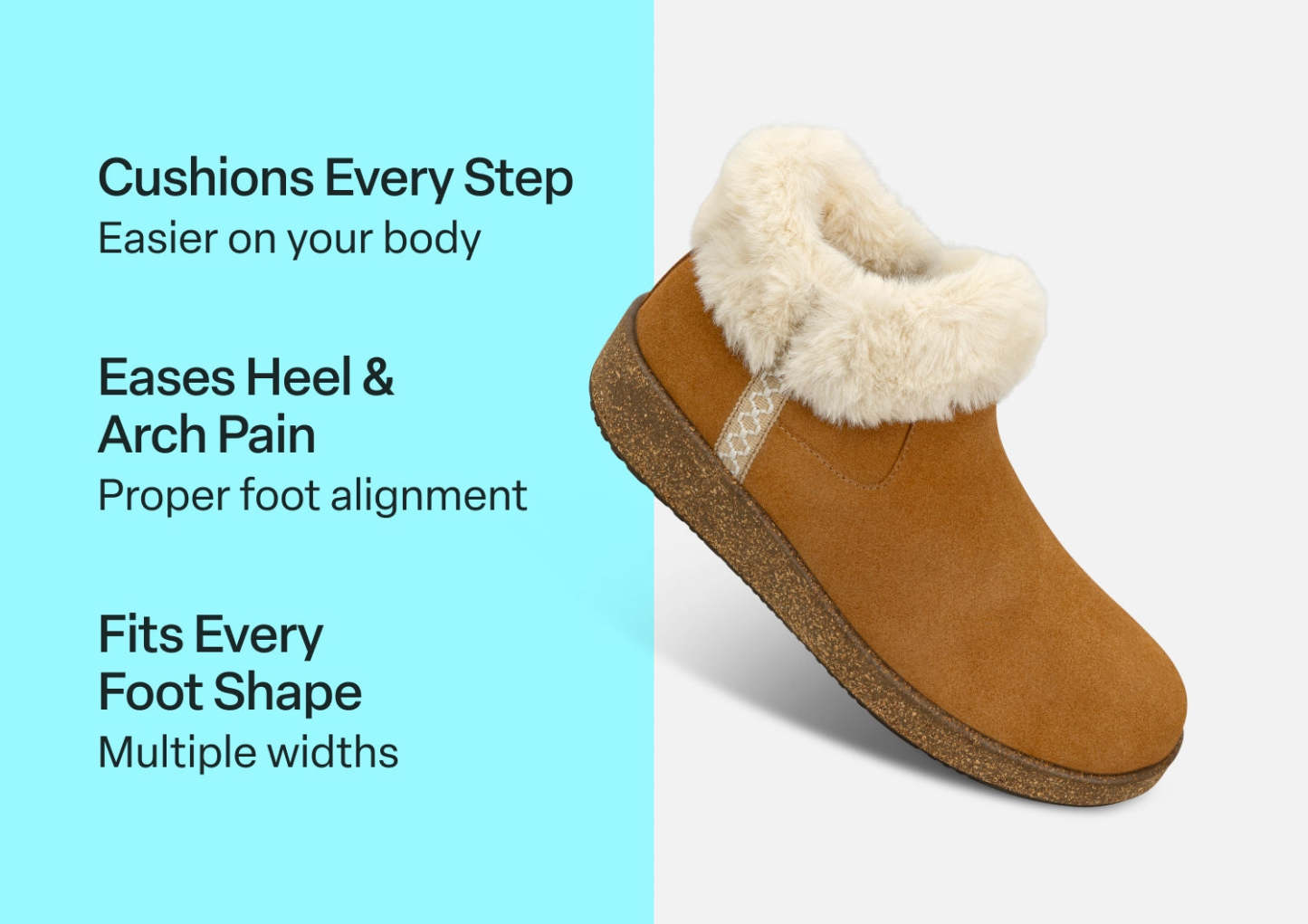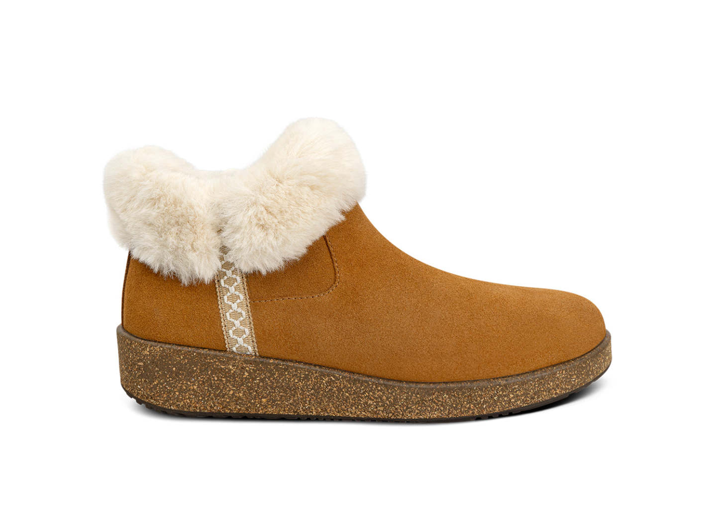 Cozi wraps your feet in pure bliss with its luxurious faux fur lining that feels like a warm hug on chilly days. This suede slipper boot seamlessly transitions from cozy mornings at home to quick trips outside, thanks to its stylish low cork blend wedge and indoor-outdoor versatility. The intricate detailing on the shaft adds a touch of charm, while the plush interior pampers your feet through every step. With Cozi, you'll never have to choose between staying comfortable and looking put-together – enjoy the best of both worlds in one delightfully soft package.