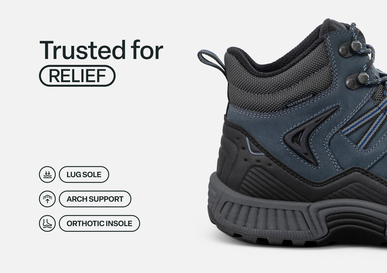Go the extra mile in ultimate comfort with the all-terrain, all-weather capabilities of this high-performance mountain boot, featuring premium waterproof leather and moisture-venting membrane. Adjustable Ortho-Cushion Support, a wide toe box, extra depth and a soft interior keep sensitive feet and conditions free of pressure and irritation for extended trekking.