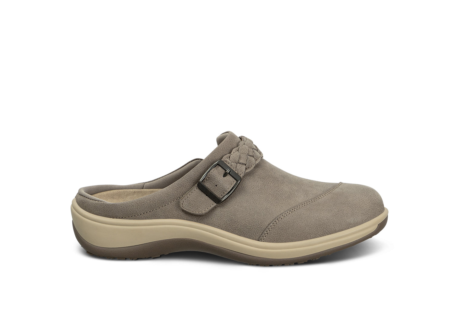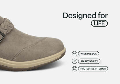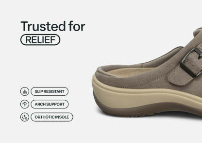 This classic clog sets a new standard for "slide in and go" comfort and support, with advanced features to relieve pain and protect mobility. Just pull open the braided strap to adjust the volume of the leather upper. A padded interior, including heel lip, secures feet. Improve body alignment and reduce walking impact with the advanced Ortho-Cushion™ System.