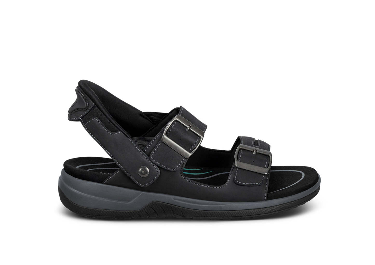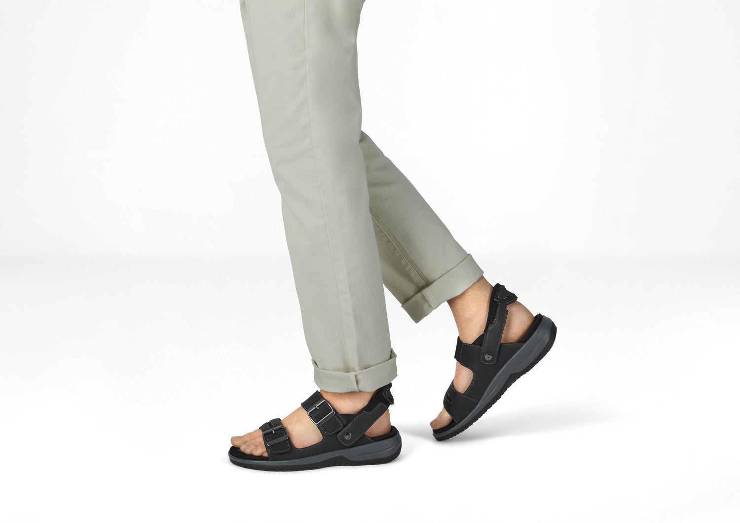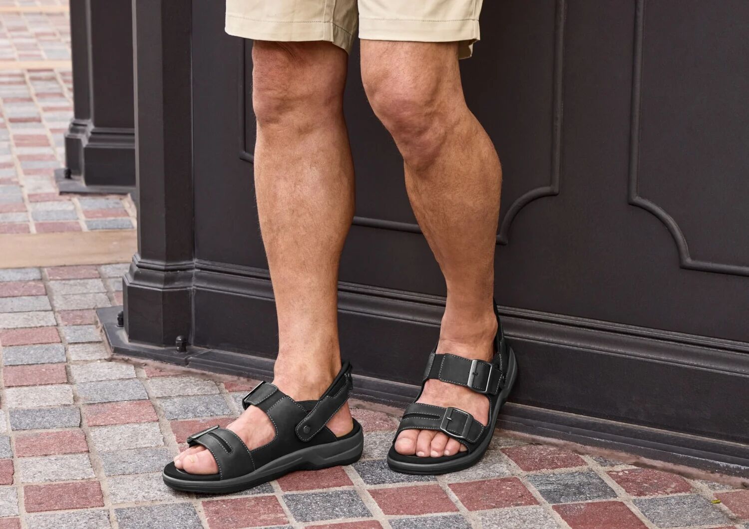 Discover powerful warm weather comfort, now in an easy-walking, healthy leather sandal. No need to bend down, with our patented hands-free technology you can just step in and go! The buckles are decorative, just pull the midfoot and forefoot strap to set an ideal fit or open them completely. Your world awaits, with advanced support and heel-to-toe pain relief by Orthofeet.