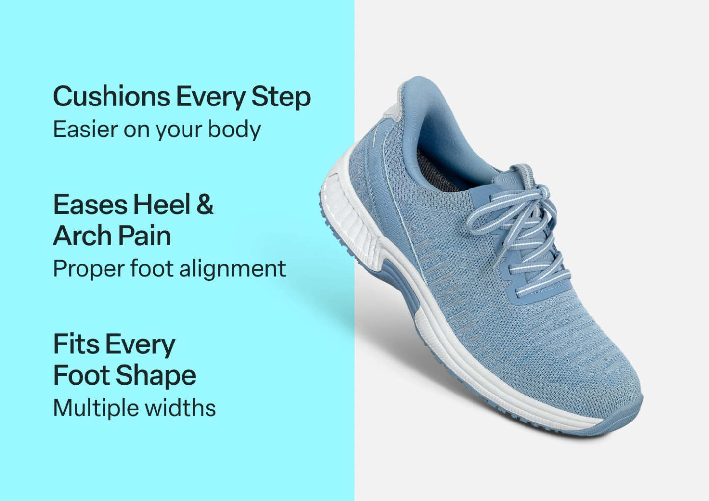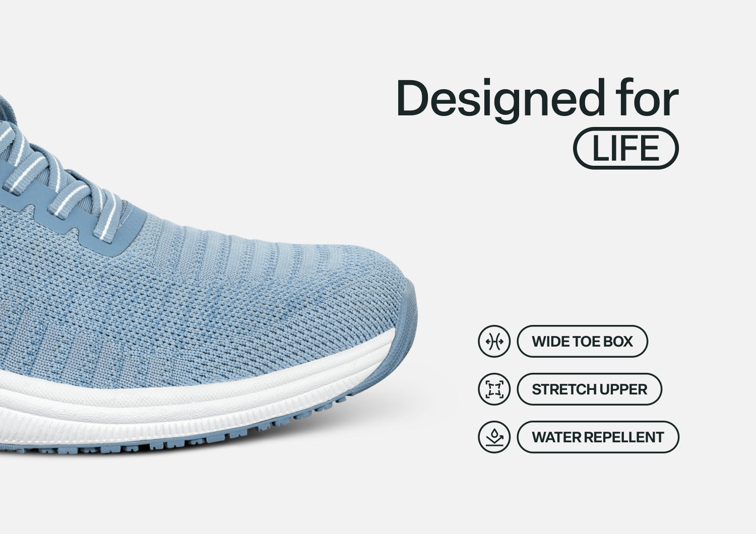 Kita's clean sporty design features our revolutionary hands-free slip-on technology. Tie the laces once, then never bend over to tie them again & just step in, without worrying about them slipping off when walking. From the water-repellant stretchable fabric uppers to the Ortho-Cushion™ System, Kita changes the game for mobility, support and comfort.