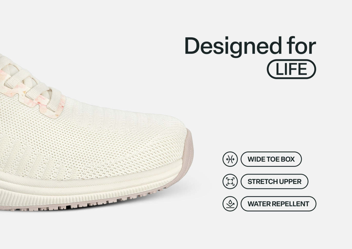 Kita's clean sporty design features our revolutionary hands-free slip-on technology. Tie the laces once, then never bend over to tie them again & just step in, without worrying about them slipping off when walking. From the water-repellant stretchable fabric uppers to the Ortho-Cushion™ System, Kita changes the game for mobility, support and comfort.