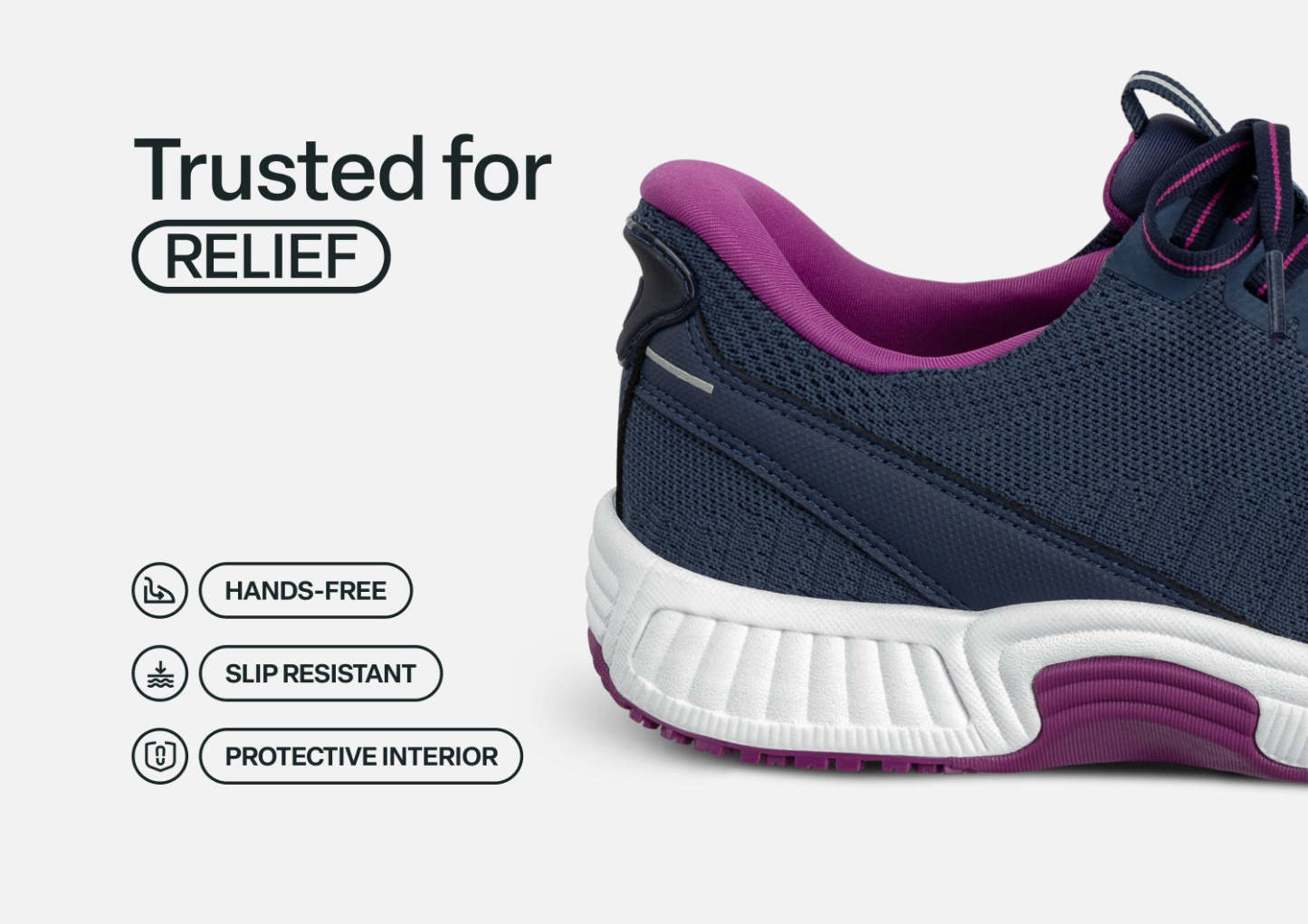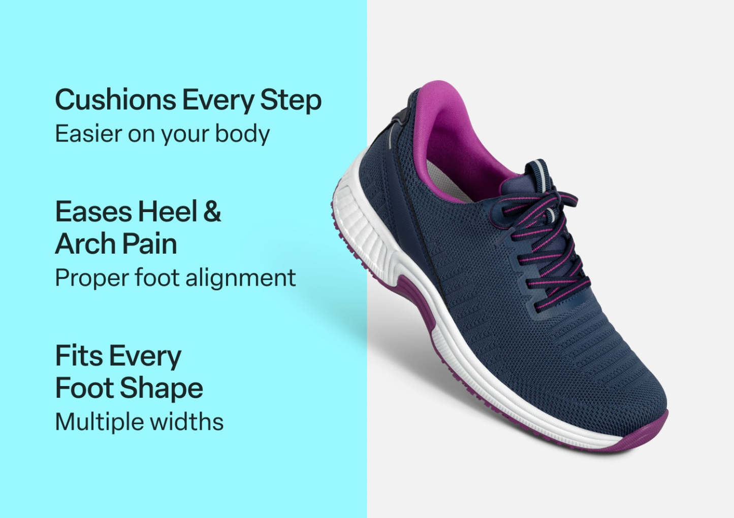 Kita's clean sporty design features our revolutionary hands-free slip-on technology. Tie the laces once, then never bend over to tie them again & just step in, without worrying about them slipping off when walking. From the water-repellant stretchable fabric uppers to the Ortho-Cushion™ System, Kita changes the game for mobility, support and comfort.