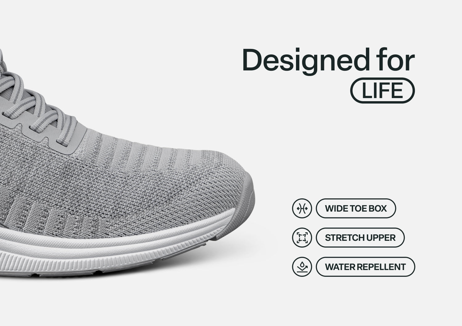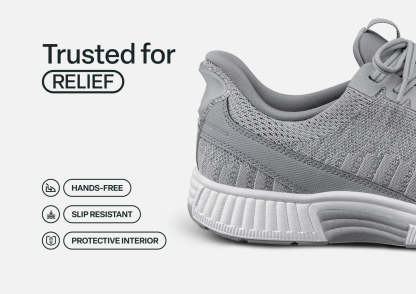 Kita's clean sporty design features our revolutionary hands-free slip-on technology. Tie the laces once, then never bend over to tie them again & just step in, without worrying about them slipping off when walking. From the water-repellant stretchable fabric uppers to the Ortho-Cushion™ System, Kita changes the game for mobility, support and comfort.