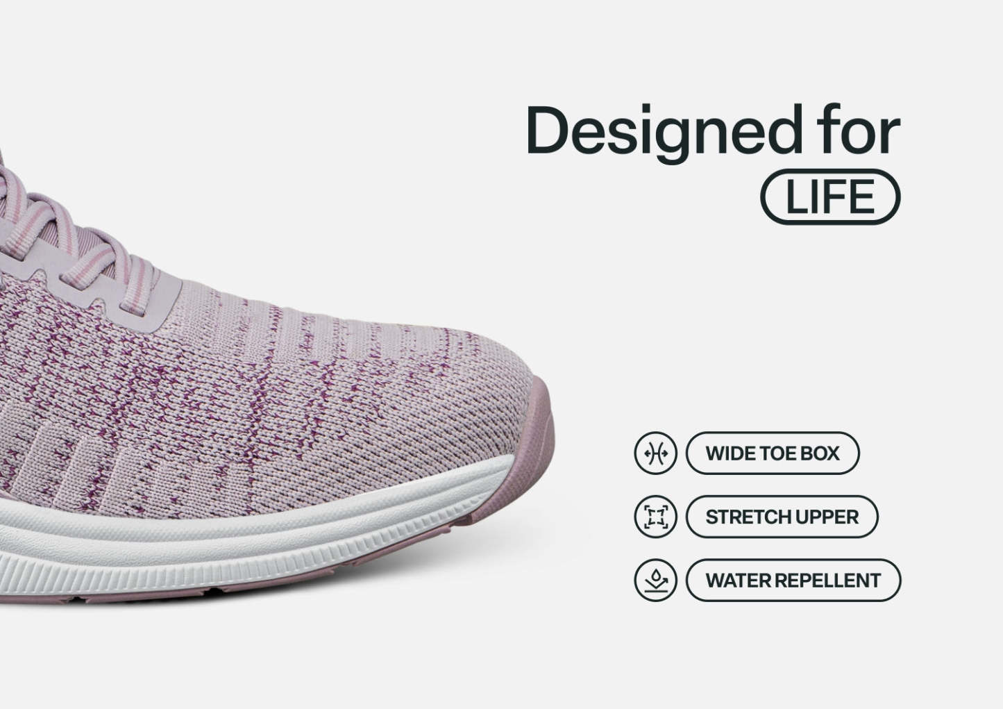 Kita's clean sporty design features our revolutionary hands-free slip-on technology. Tie the laces once, then never bend over to tie them again & just step in, without worrying about them slipping off when walking. From the water-repellant stretchable fabric uppers to the Ortho-Cushion™ System, Kita changes the game for mobility, support and comfort.