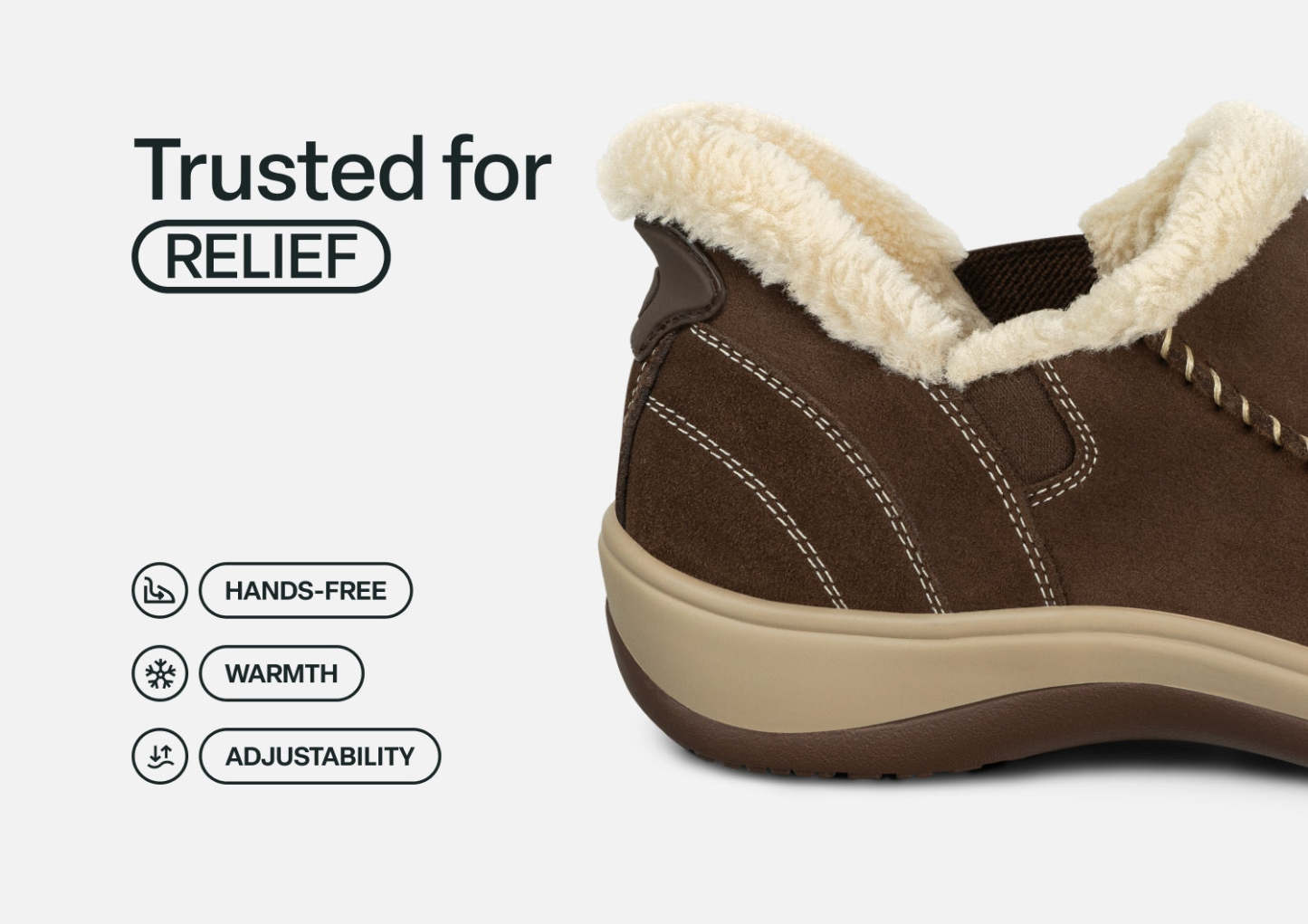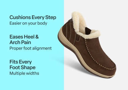 Saunter indoors and venture out in the luxurious comfort of these suede slipper-shoes. No need to bend down, our revolutionary hands-free technology makes it easy to slide them on and get going. Lined with cozy faux fur, Lorin keeps feet warm and free of irritation for pain-free hours anywhere, featuring the walking support of the Ortho-Cushion™ System to soften every step.