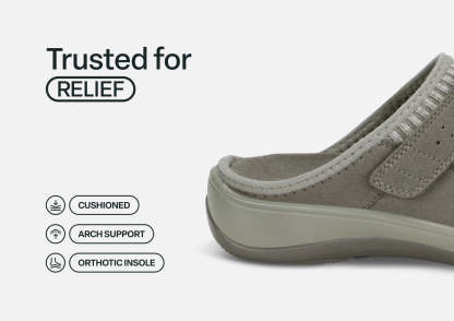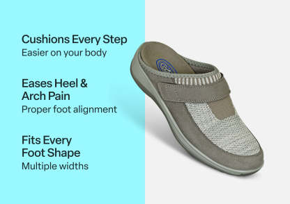 Active support, a pressure-free fit and pain-relieving comfort are in the house. Louise hugs your feet in stretchable mesh that follows every curve, bump and bone, and the adjustable strap secures your fit for effortless indoor living. With anatomical arch support and all the mobility advantages of Ortho-Cushion™ System support and cushioning, these slippers save every day.