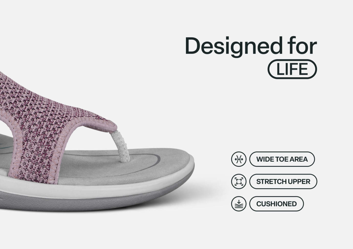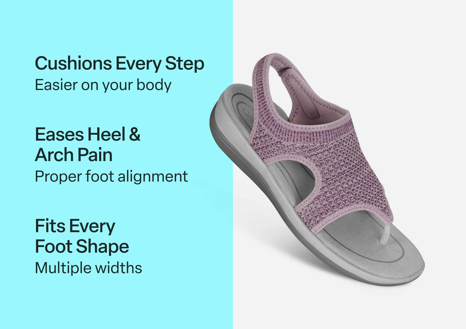 This women's sandal gently hugs the curves of your foot in stretchable, breathable fabric. The toe-post is thin, soft and flat for irritation-free comfort and the padded heel strap makes it easy to slide on and enjoy a flip-flip alternative that won't slip off. How cool is that? Our Ortho-Cushion™ System is the ideal platform to keep your busy summer days blissfully pain-free.