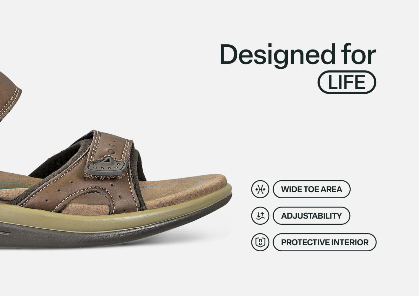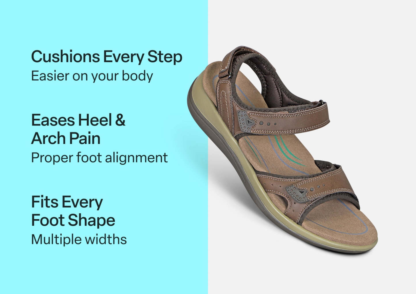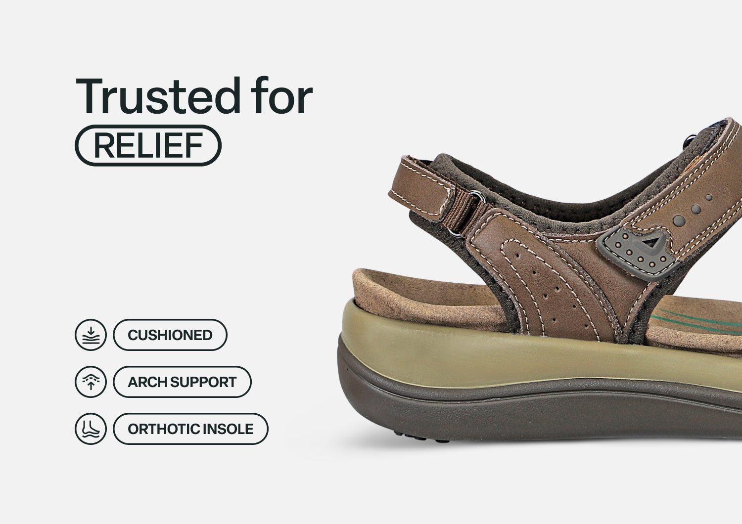 Whatever path your day takes, the Malibu is ready to play. Three adjustable, padded straps keep feet reliably secure and tender conditions irritation-free. Our innovative two-way inset strap opens, closes and adjusts from either side, especially nice when bending over is difficult. With total Ortho-Cushion™ System walking comfort and support, the Malibu loves life outside.