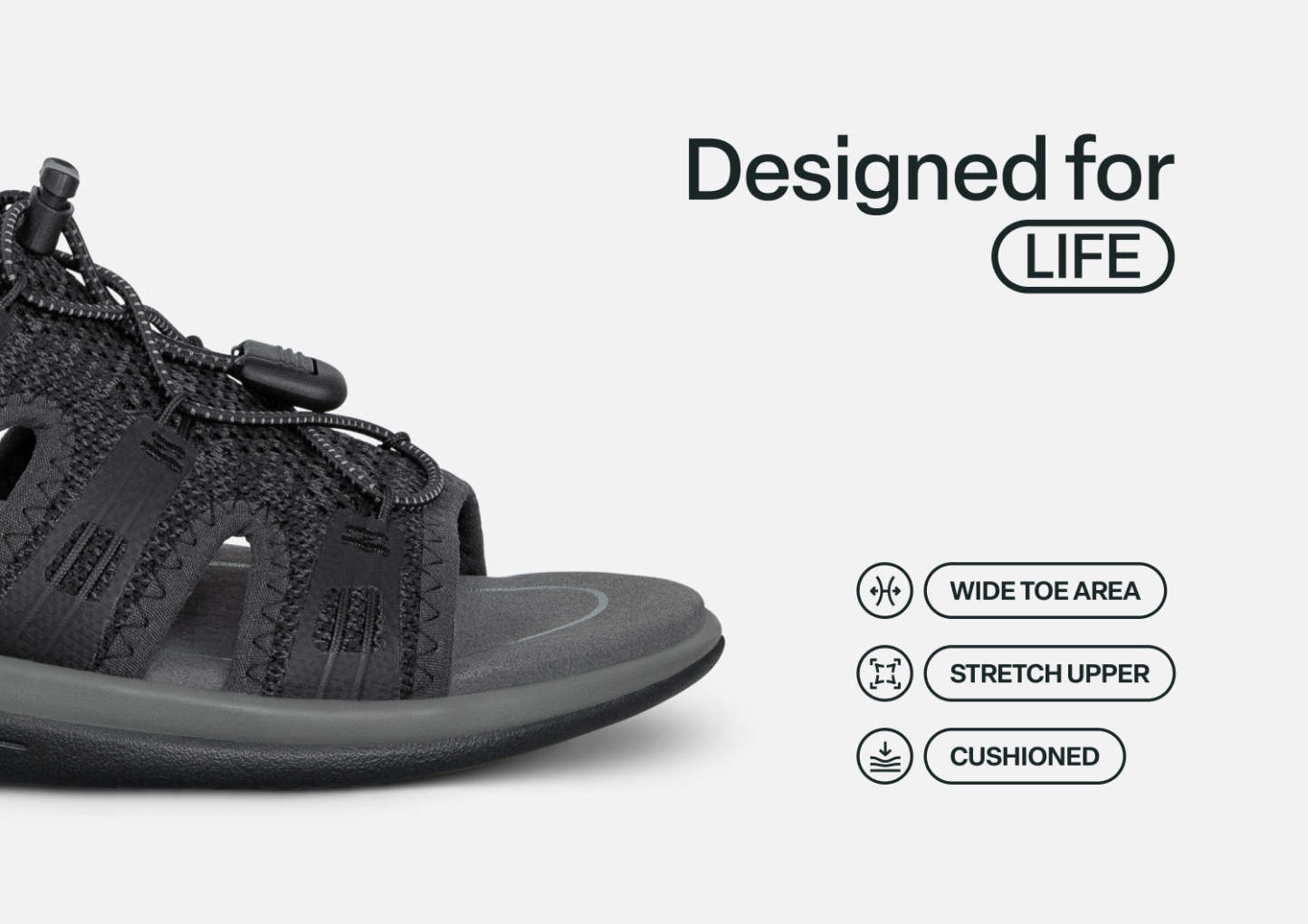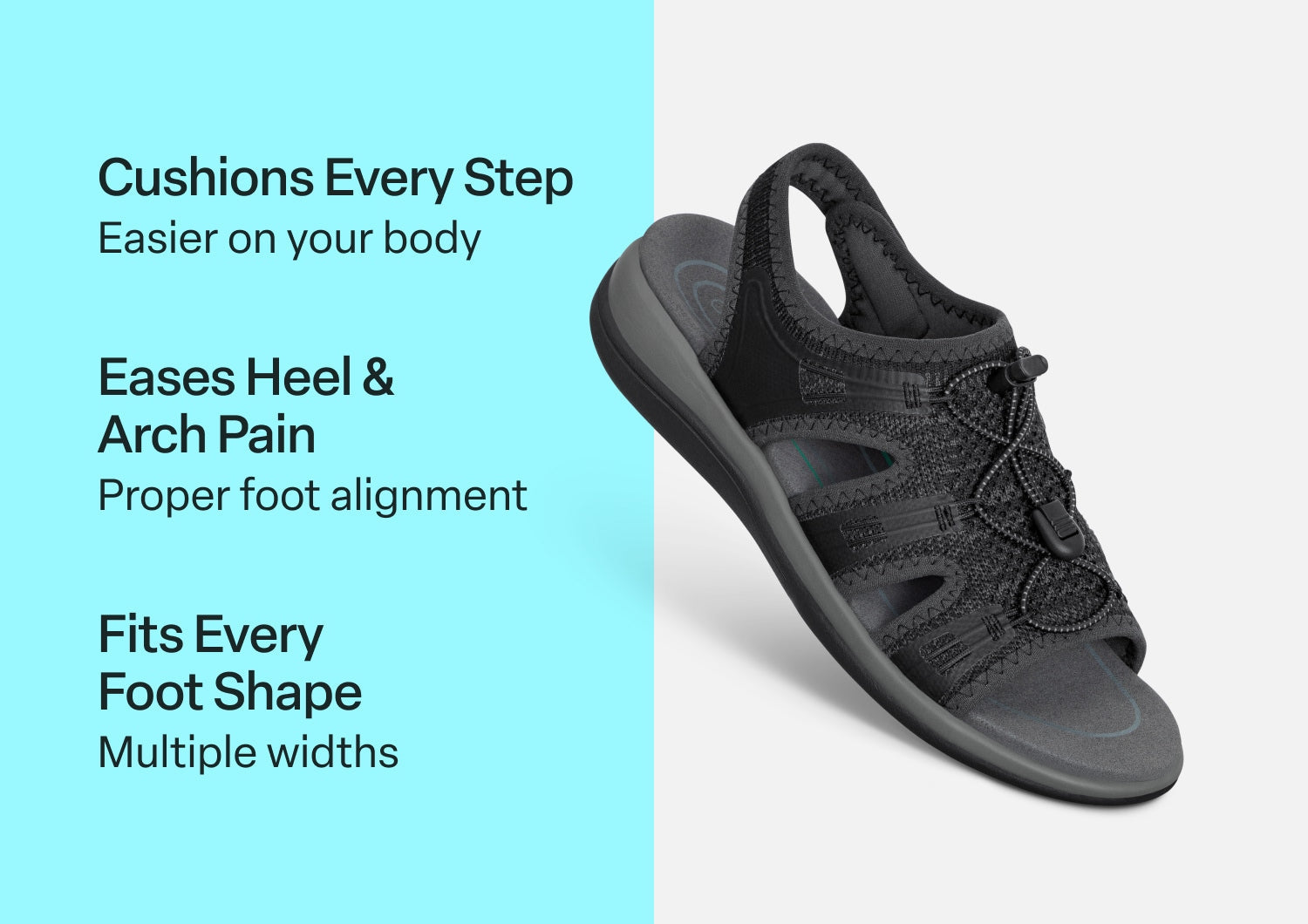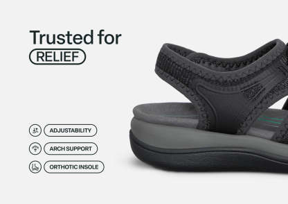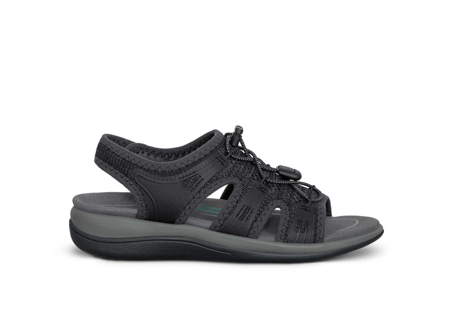 The easygoing style of this casual women's sandal makes it a little hard to believe how much support and walking comfort it provides. The stretchable, breathable fabric upper gently follows every shape of your foot with a bungee lace to set the perfect active fit. Open the padded heel strap, slide in and adjust. Now let the Ortho-Cushion™ System make every vista a pleasure to reach.