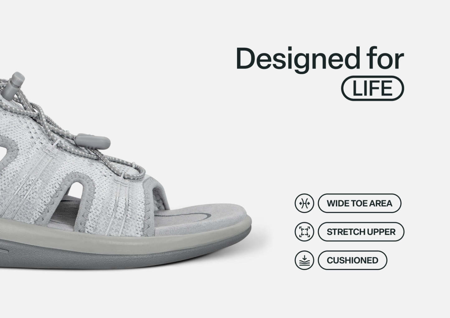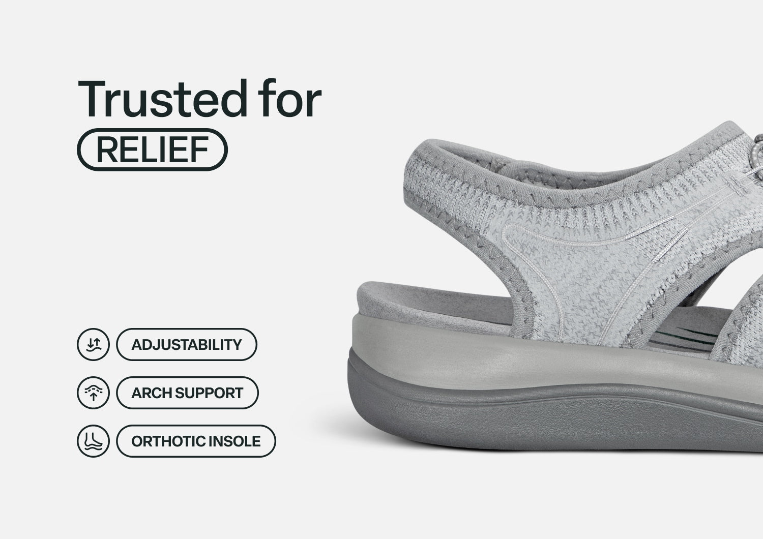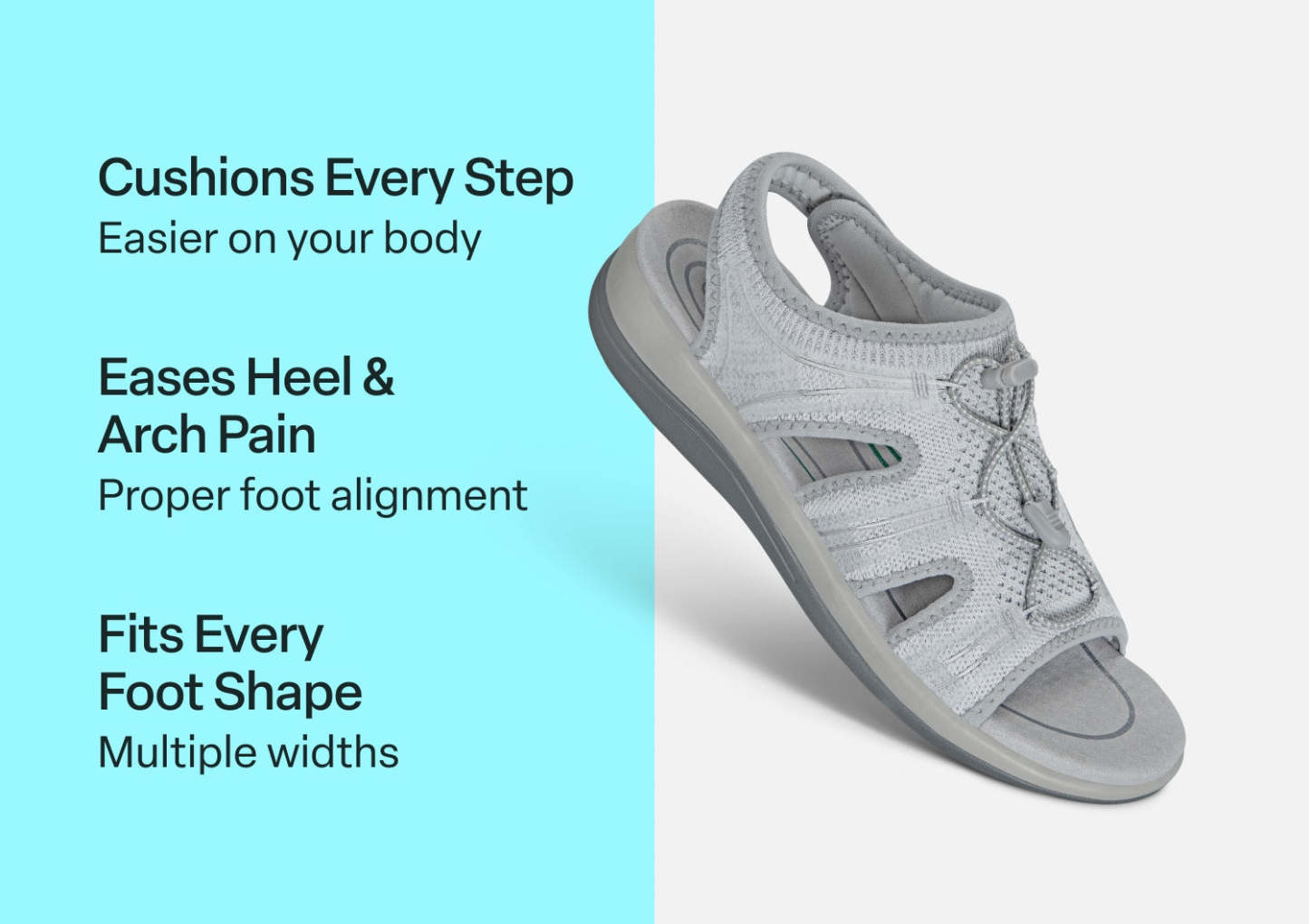 The easygoing style of this casual women's sandal makes it a little hard to believe how much support and walking comfort it provides. The stretchable, breathable fabric upper gently follows every shape of your foot with a bungee lace to set the perfect active fit. Open the padded heel strap, slide in and adjust. Now let the Ortho-Cushion™ System make every vista a pleasure to reach.
