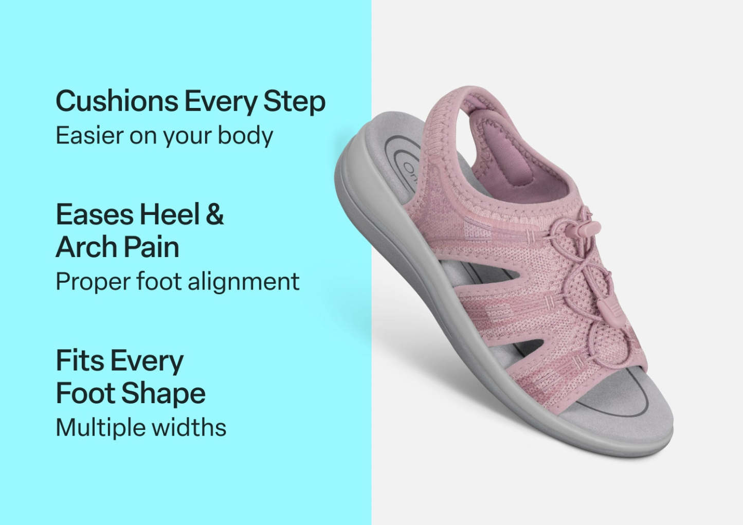 The easygoing style of this casual women's sandal makes it a little hard to believe how much support and walking comfort it provides. The stretchable, breathable fabric upper gently follows every shape of your foot with a bungee lace to set the perfect active fit. Open the padded heel strap, slide in and adjust. Now let the Ortho-Cushion™ System make every vista a pleasure to reach.