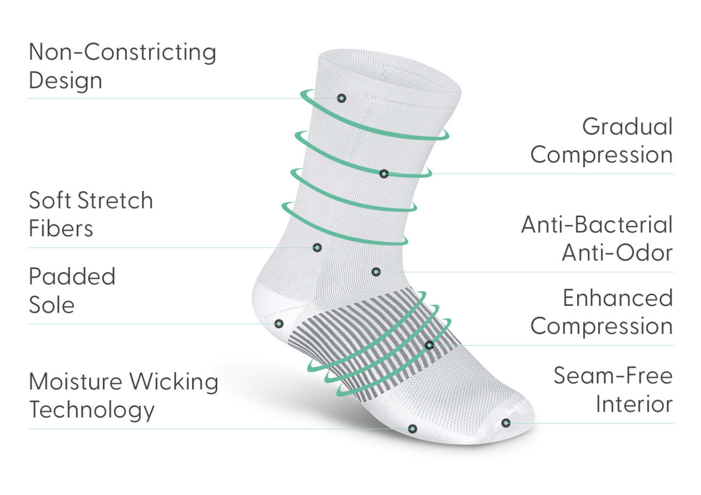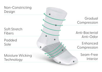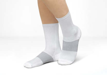 Mid-calf compression socks by Orthofeet fit comfortably in most shoes and feature an anatomical shape that ensures gradual compression from calf-to-ankle with enhanced compression around the midfoot. Relieve symptoms and provide care for a variety of conditions, with a breathable, seam-free interior and extra padding for healthy comfort.