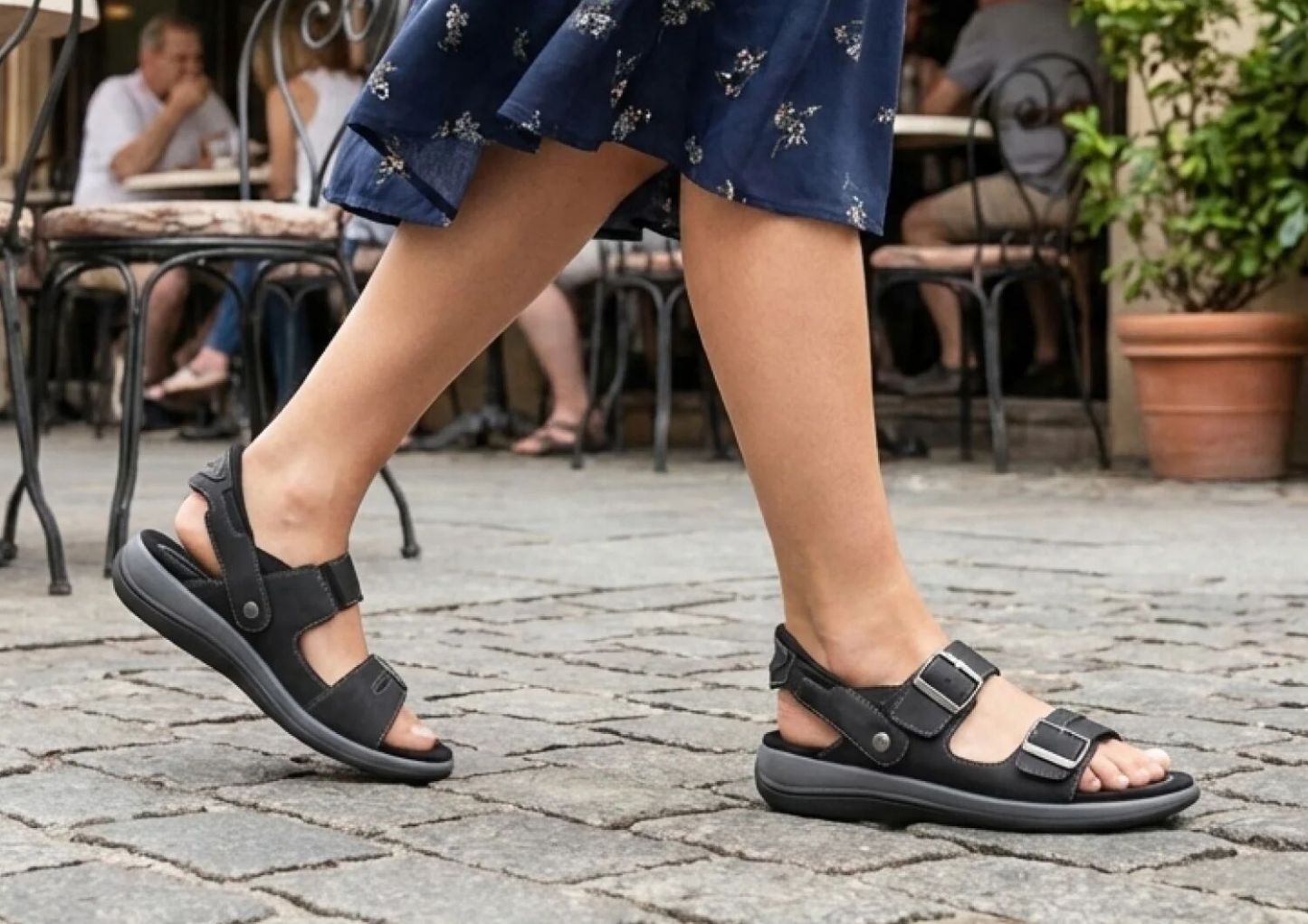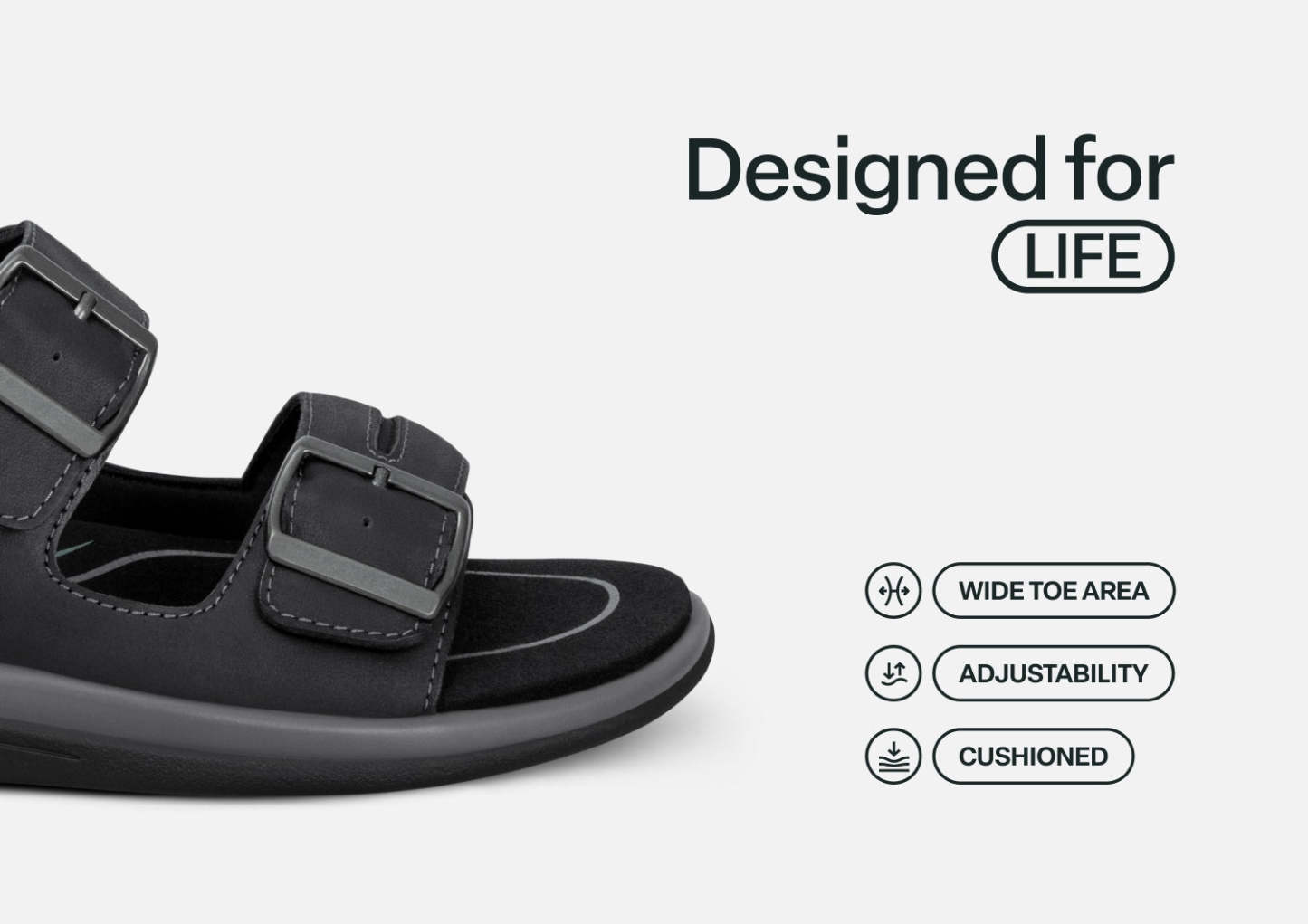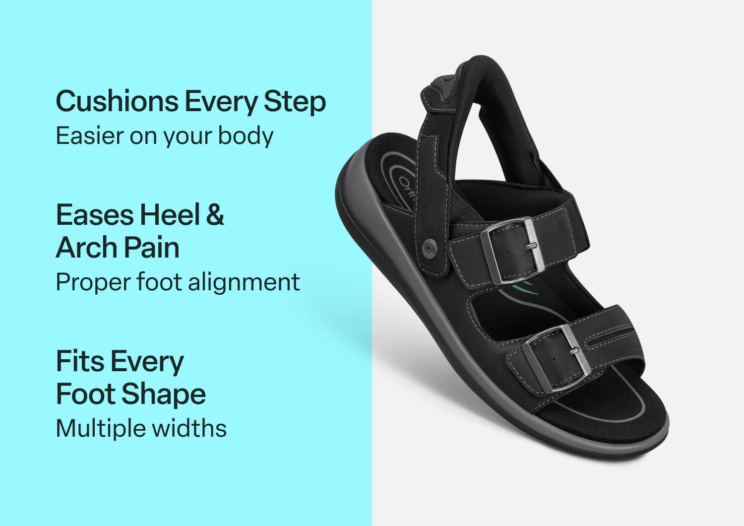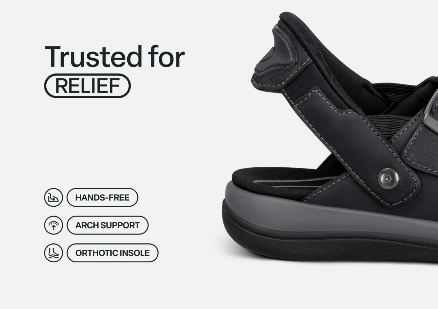 Walk in heavenly comfort, wherever the warm weather leads. In durable leather, Minerva features our innovative hands-free design – just step in & go. The buckles are decorative, and the two front straps pull open for enhanced adjustability and accessibility. Take everyday farther with the impact absorption and healthy support of the Ortho-Cushion™ System.
