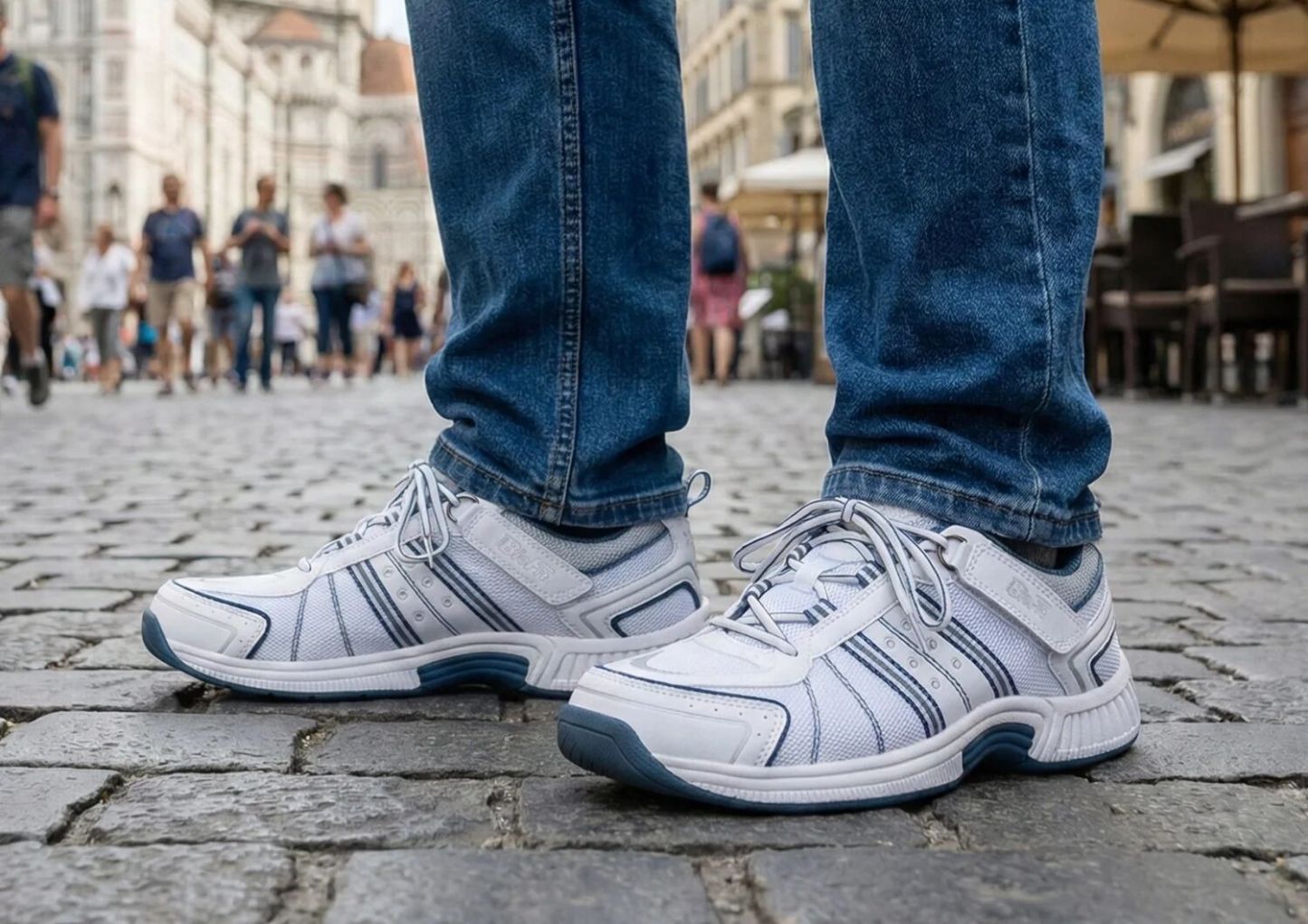 All roads lead to comfort in this breathable and non-binding microfiber and fabric sneaker. Our tie-less lacing system is just as cool & tie these once, then use the tabs on either side to open and close them. Brilliant! Enjoy every street, lane and path with the adjustable support of the Ortho-Cushion™ System. The mild rocker sole and padded interior make getting there pain-free.