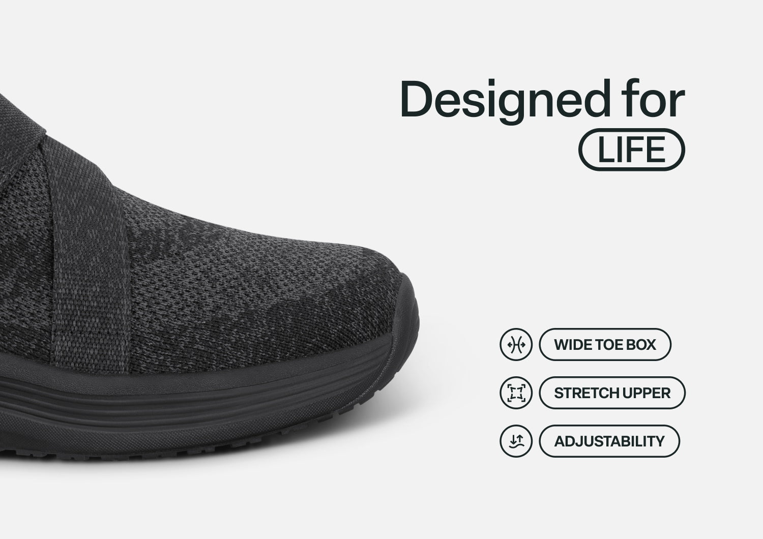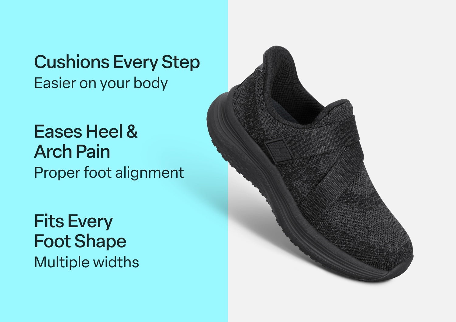 Naya takes hands-free ease and healthy comfort to a new level. Set your whole-foot fit with the innovative Z-strap closure when you first get them. Just step in and go from then on! A stretchy upper and Ortho-Cushion™ System support ensure long walks are pain-free. Water-resistance and a grippy tread protect your safe mobility, even when conditions get slippery.