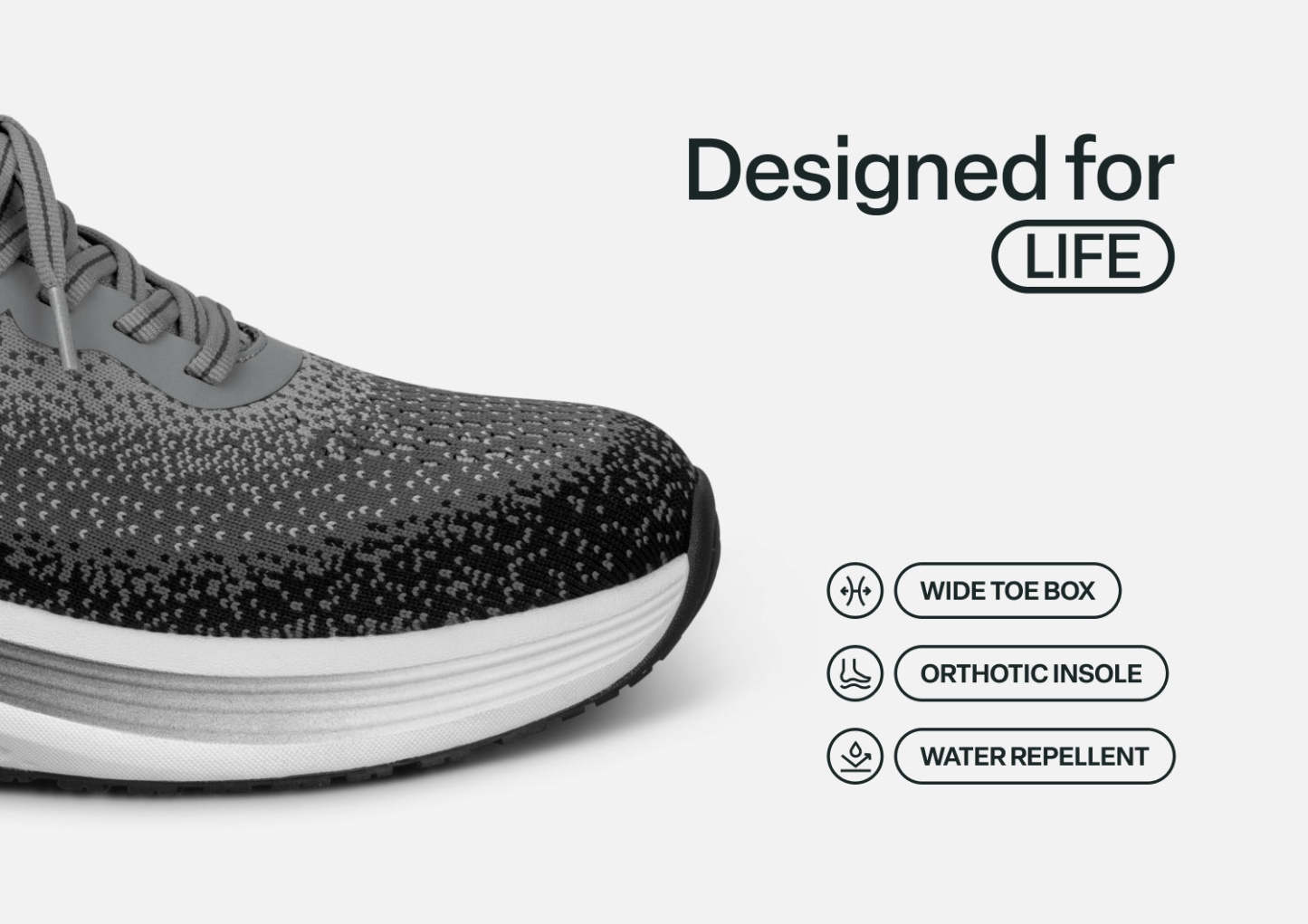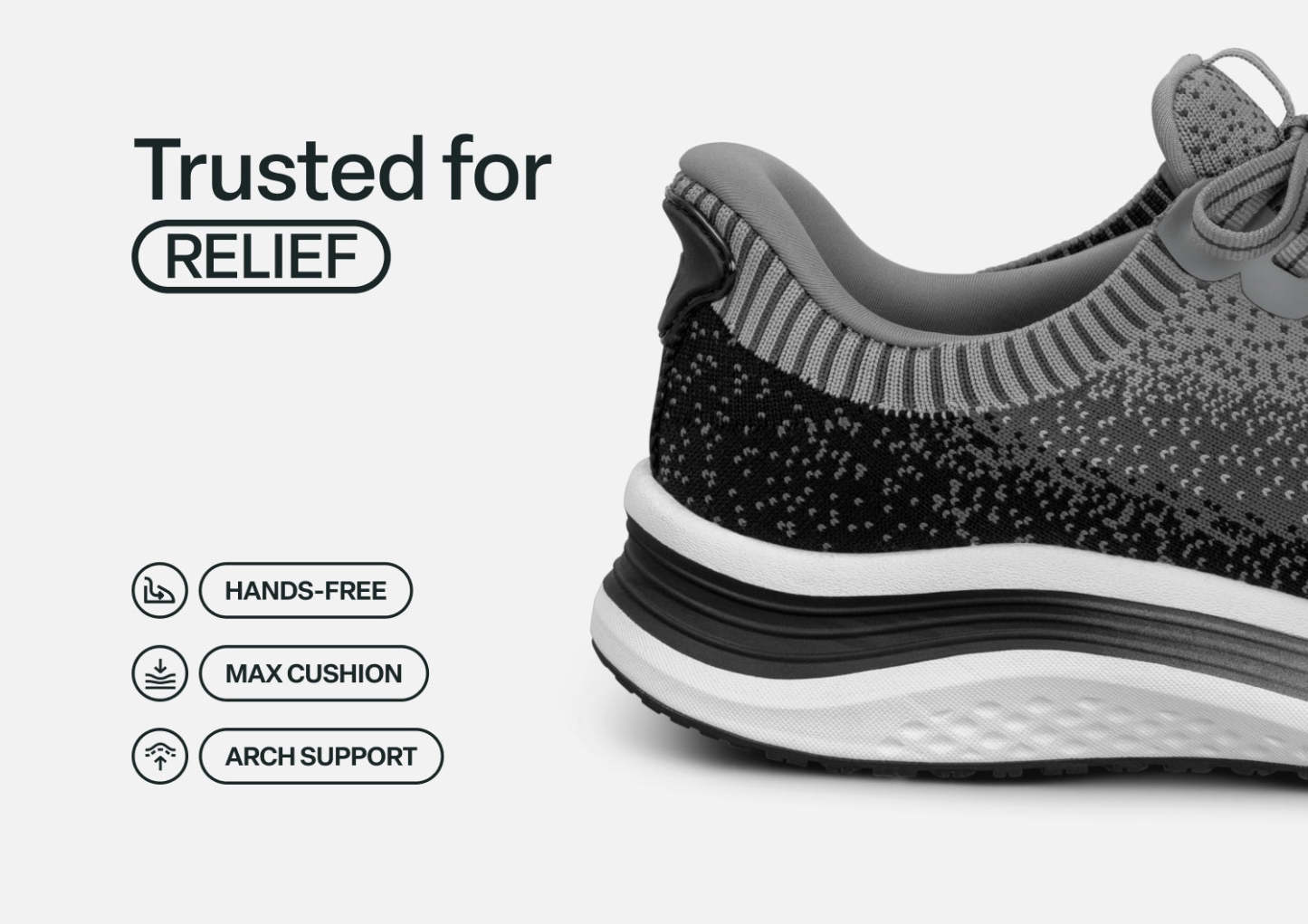 Nira takes your active, pain-free comfort to the next level in modern sneaker style. With our patented hands-free technology, you can skip the laces. Just step-in and go! The water-repellant stretch upper keeps pressure off sensitive areas, while an advanced orthotic sole design disperses walking impact, to get you happily through every day's finish line.