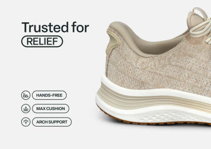 Nira takes your active, pain-free comfort to the next level in modern sneaker style. With our patented hands-free technology, you can skip the laces. Just step-in and go! The water-repellant stretch upper keeps pressure off sensitive areas, while an advanced orthotic sole design disperses walking impact, to get you happily through every day's finish line.