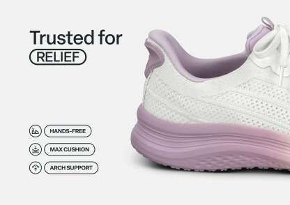 Nira takes your active, pain-free comfort to the next level in modern sneaker style. With our patented hands-free technology, you can skip the laces. Just step-in and go! The water-repellant stretch upper keeps pressure off sensitive areas, while an advanced orthotic sole design disperses walking impact, to get you happily through every day's finish line.