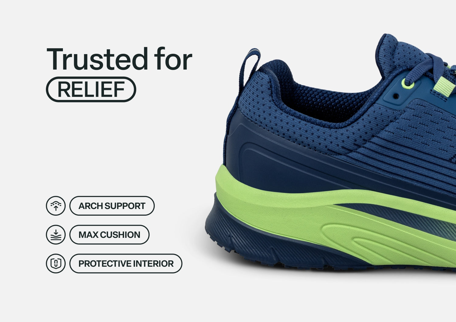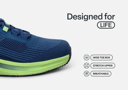 Conquer every mile in Race, our ultimate men's athletic shoe made for walks, jogs and runs. Race features breathable mesh uppers and our advanced Ortho-Cushion™ System that transforms impact into energy. The wide toe box reduces pressure on sensitive areas, while the grippy sole maintains confident traction on any surface. Push your limits without pushing through pain!