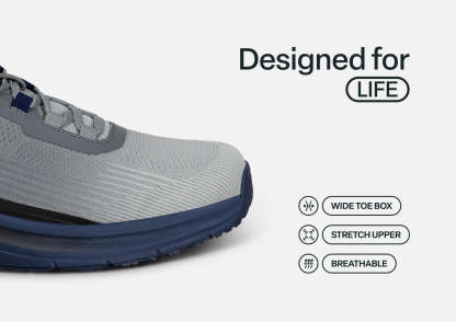 Conquer every mile in Race, our ultimate men's athletic shoe featuring breathable mesh uppers and our advanced Ortho-Cushion™ System that transforms impact into energy. The wide toe box reduces pressure on sensitive areas, while the grippy sole maintains confident traction on any surface. Push your limits without pushing through pain—podiatrist-recommended comfort that keeps your mobility in the lead.