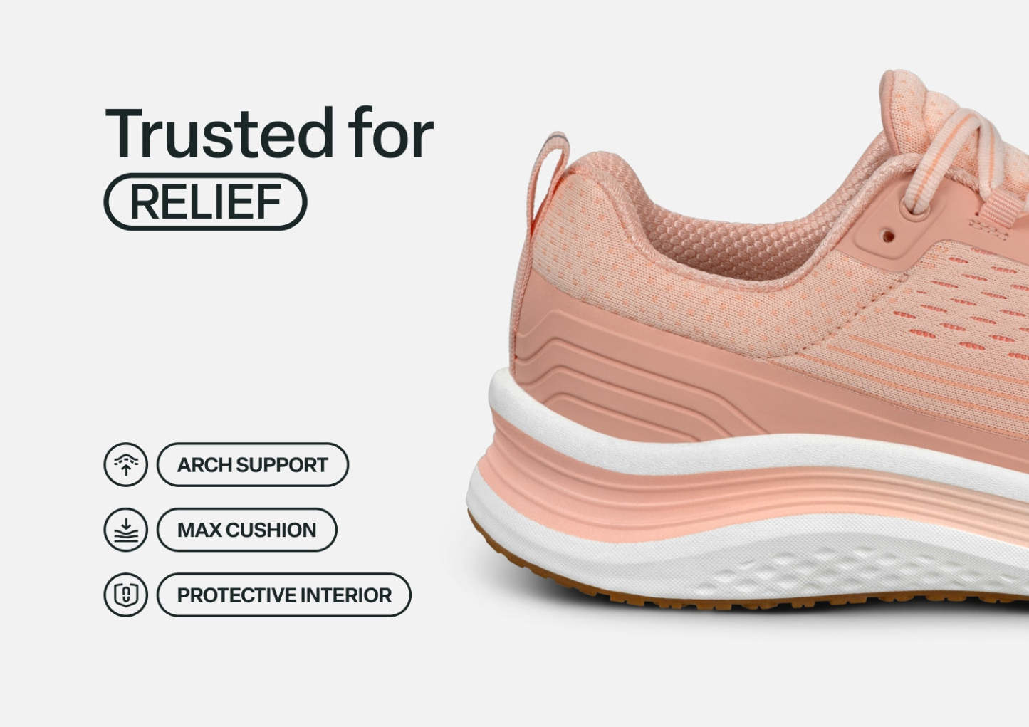 Get ready for podiatrist-recommended comfort that's born to run. From the lightweight breathable nylon upper to the stable, high traction outsole, Relay keeps your mobility in the lead. Leave pain behind with a heel-to-toe max cushioned sole and a near custom fit, while the Ortho-Cushion™ System offloads pressure and aligns ergonomic support for every stride.