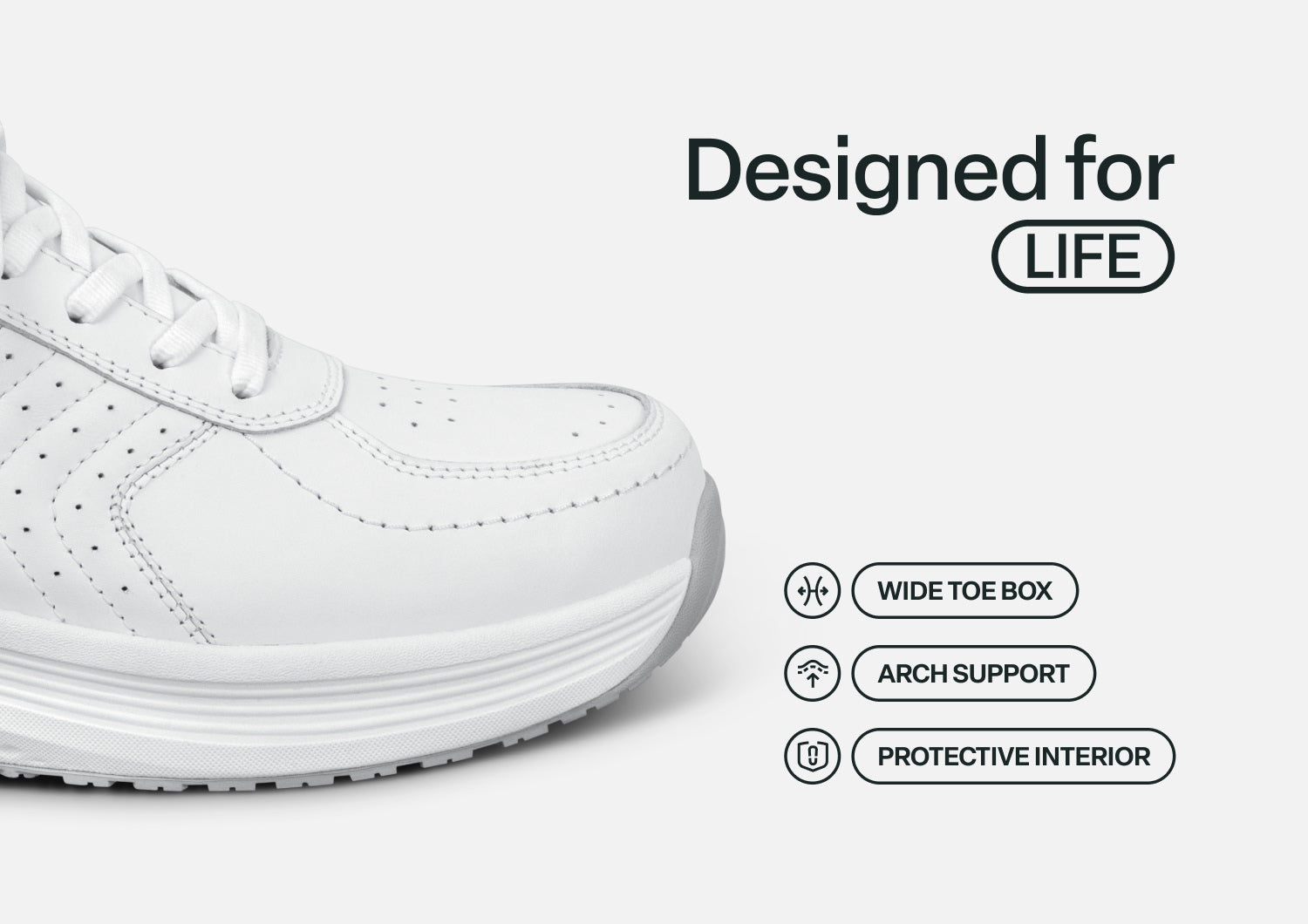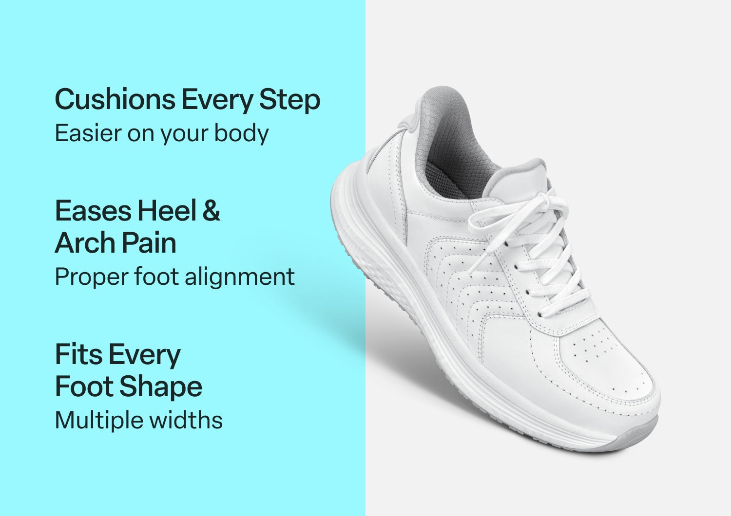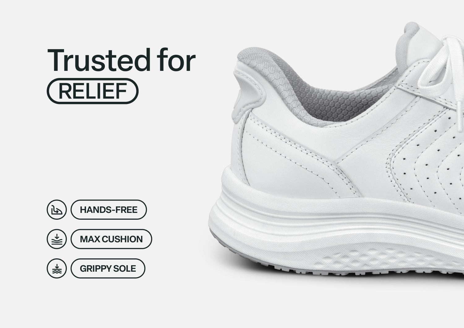 Your go-to classic sneaker just got a major upgrade in all-day comfort. Don’t bother with the laces, just slip on our OFX hands-free design and get moving. A heel-to-toe max cushion sole, Ortho-Cushion™ System support, and a slip-resistant tread ease every step. Roam’s soft, durable leather upper and padded interior alleviate pressure for more hours and less pain.