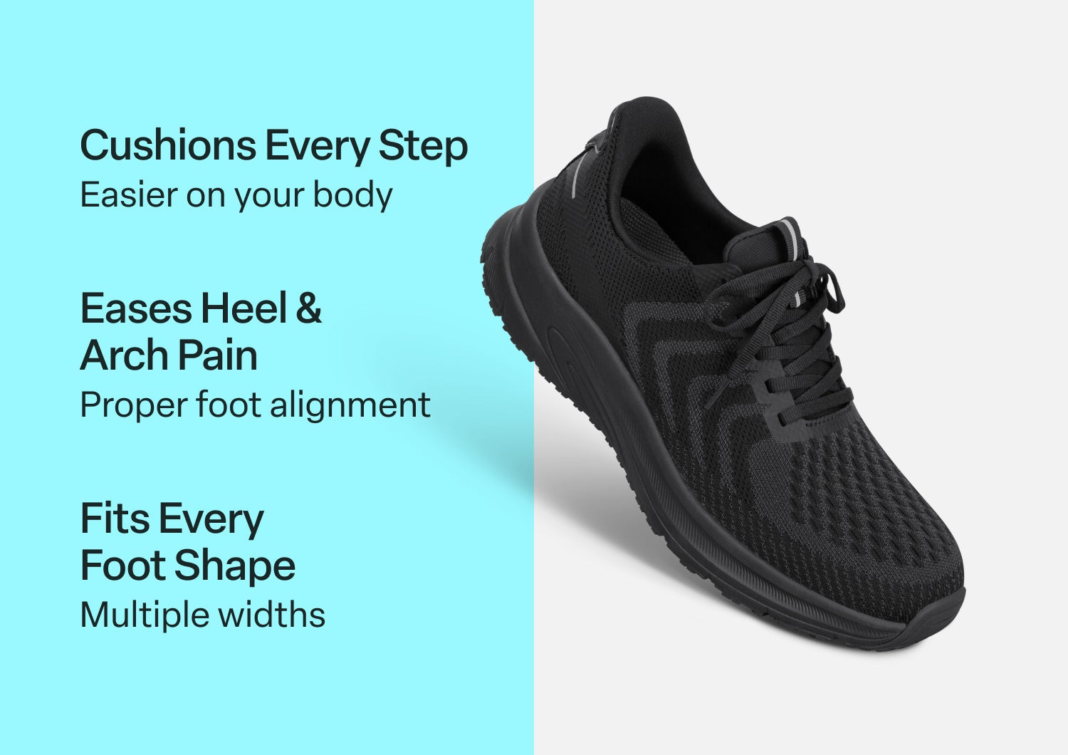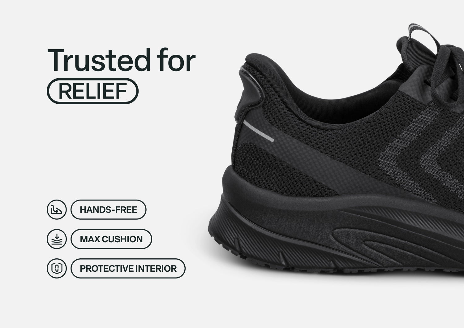 It's ready, set, go & for all day comfort in modern sneaker style. Our patented hands-free, slip-on technology means no time bent over to tie the laces. Water-repellent stretch uppers take the pressure off every curve and bump of your feet, while the advanced, customizable Ortho-Cushion™ System takes the pain out of every step, to always keep your healthy mobility on track.