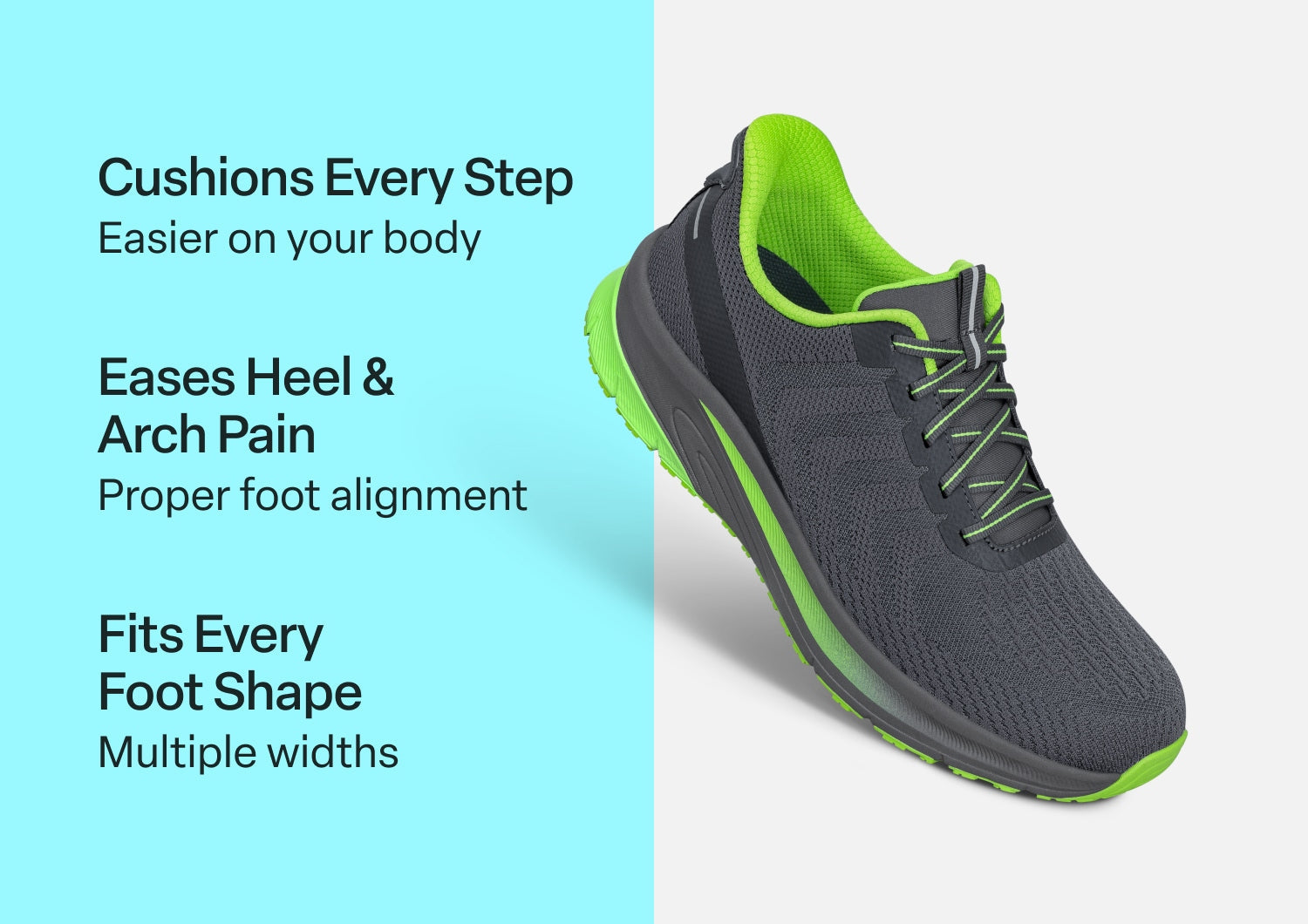 It's ready, set, go & for all day comfort in modern sneaker style. Our patented hands-free, slip-on technology means no time bent over to tie the laces. Water-repellent stretch uppers take the pressure off every curve and bump of your feet, while the advanced, customizable Ortho-Cushion™ System takes the pain out of every step, to always keep your healthy mobility on track.