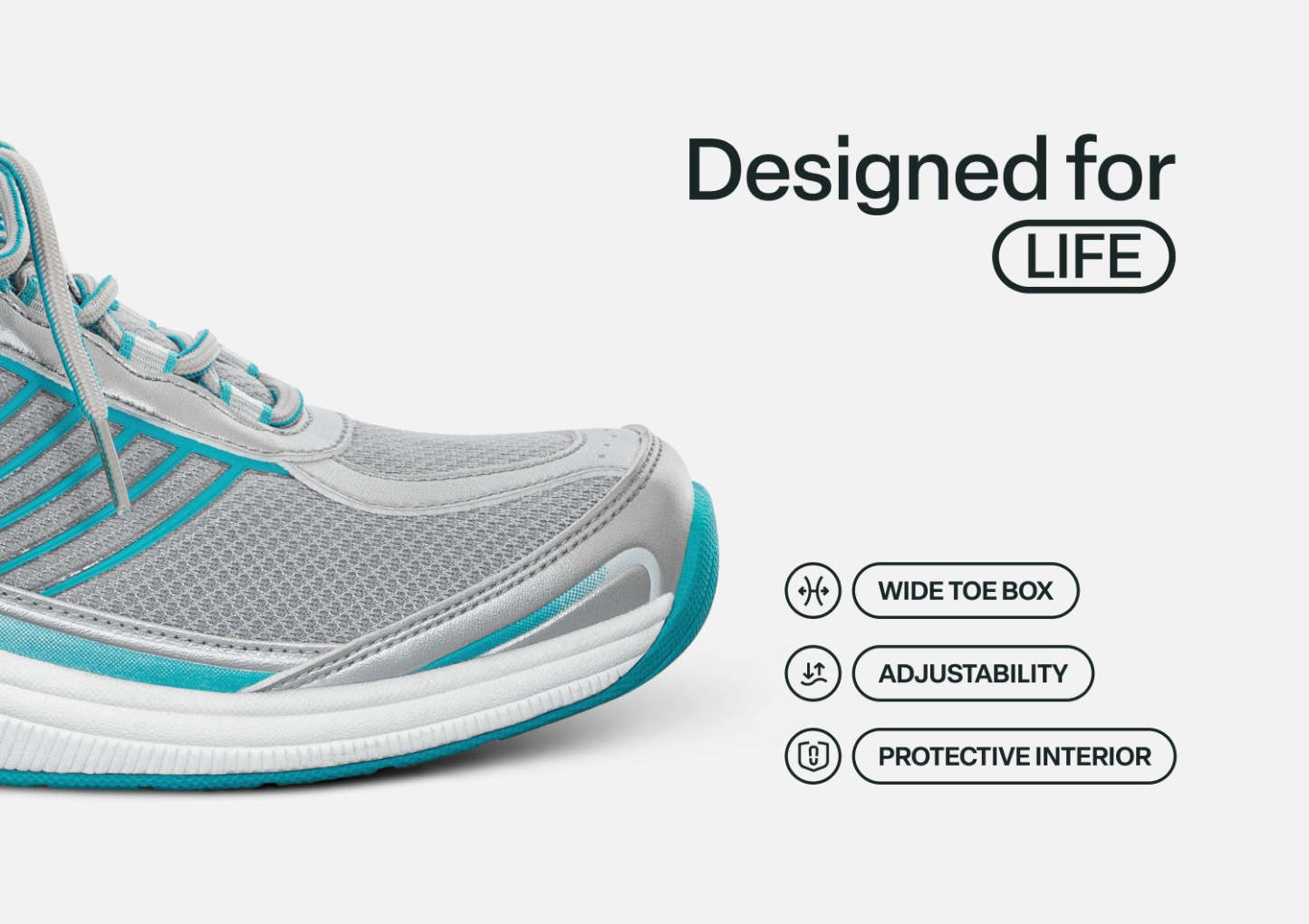 The sporty Verve for women features our ingenious tie-less closure for a laced look that has clever openable tabs on either side of the shoe, no tying required. With an adjustable heel strap, the Verve gently secures your custom fit for days-on-the-go, with extra depth and renowned Ortho-Cushion Support and comfort that make every step free of pain.