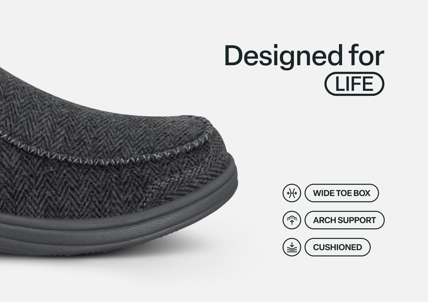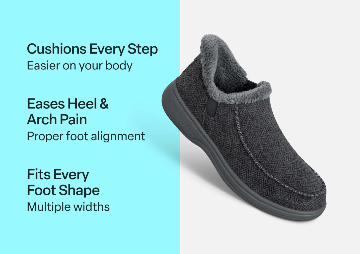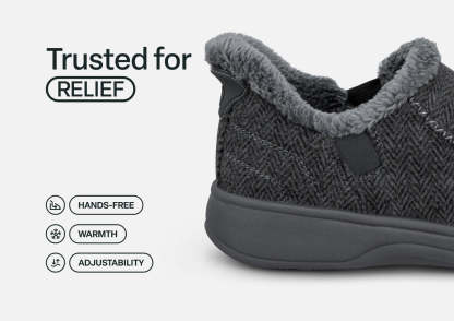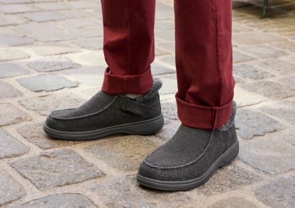 This tailored slipper-shoe offers full foot protection indoors and out. Put these on without bending down, thanks to our patented hands-free design. Lined completely in faux fur and featuring the supportive, easy-walking technology of the Ortho-Cushion™ System, Vito keeps your feet warm and well supported for more pain-free hours doing this and that, anywhere.