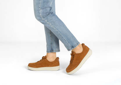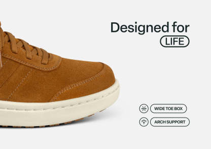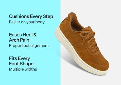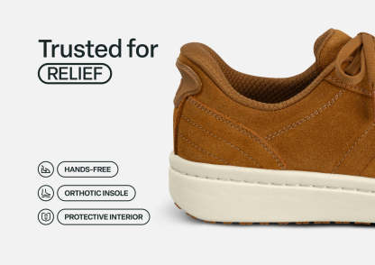 Within this "goes-with-everything" lightweight leather sneaker is engineering for life on-the-go. Skip the laces and step right in, with our revolutionary hands-free technology. Even sensitive feet stay pain and injury-free, thanks to a padded, roomy interior. With the impact-absorbing ergonomics and adjustable support of the Ortho-Cushion™ System, it's "game on" every day.