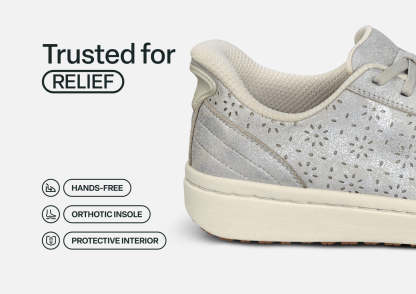 Within this "goes-with-everything" lightweight leather sneaker is engineering for life on-the-go. Skip the laces and step right in, with our revolutionary hands-free technology. Even sensitive feet stay pain and injury-free, thanks to a padded, roomy interior. With the impact-absorbing ergonomics and adjustable support of the Ortho-Cushion™ System, it's "game on" every day.
