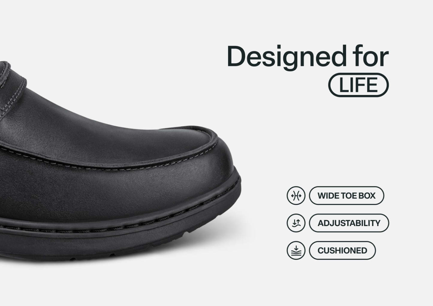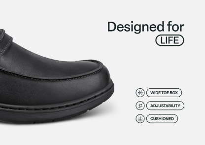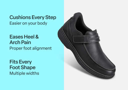Xavier is your all-occasion ally for on-the-go comfort. Step into a secure, pressure-free fit without bending or tying with our leading hands-free design. A soft leather upper and smooth protective interior ensure feet of all types have healthy room to move without binding. Take long days in stride with advanced Ortho-Cushion™ System support and cushioning.