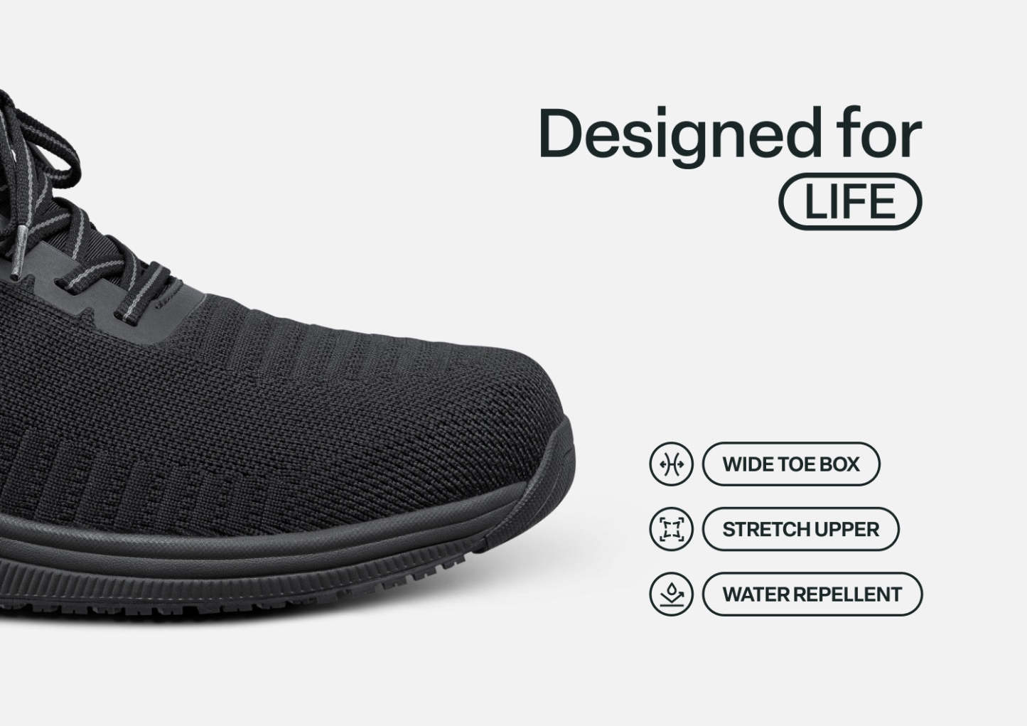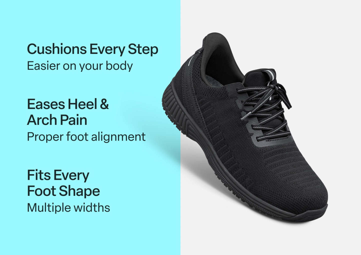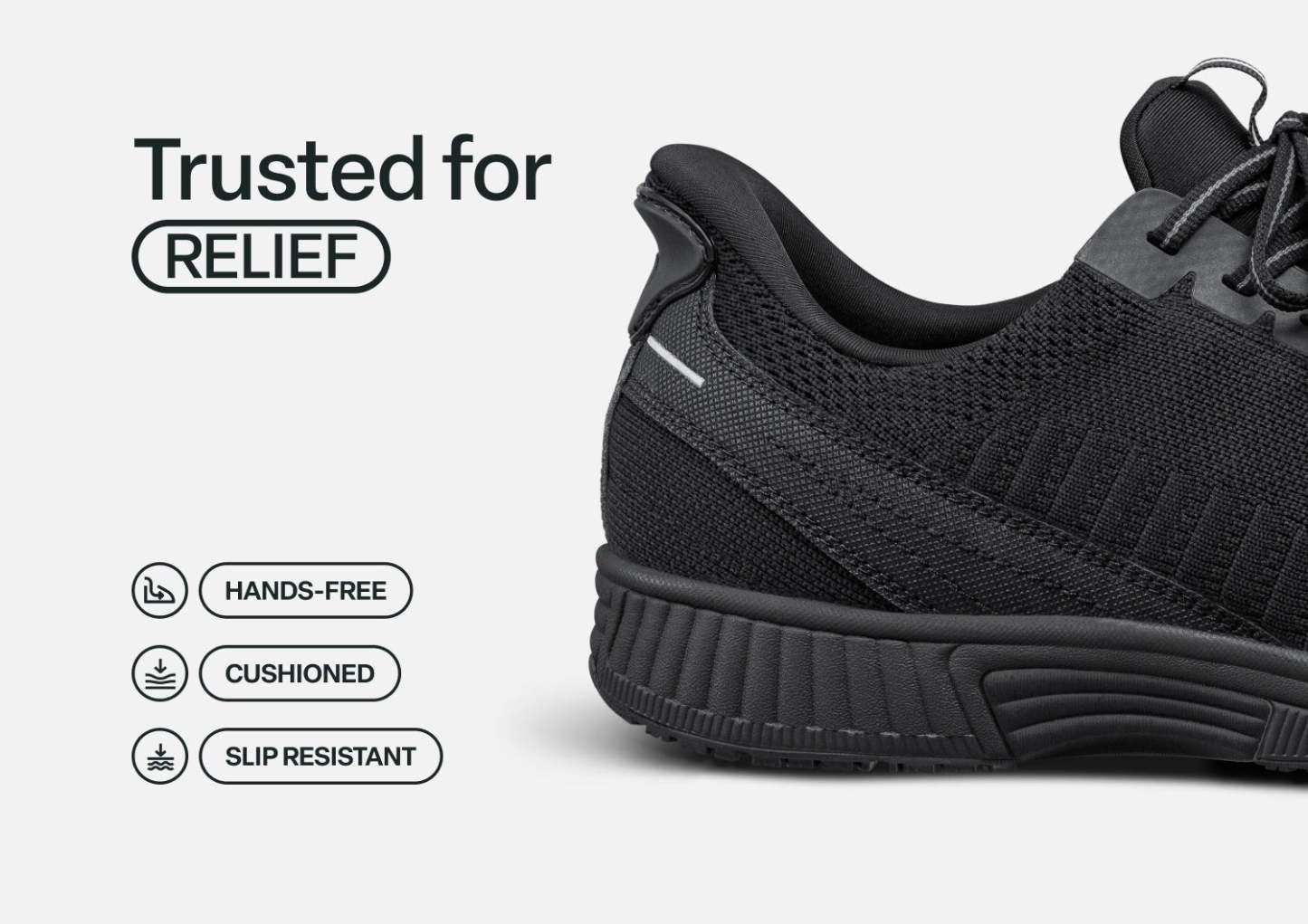 Just step in and get going with Yari, featuring our revolutionary hands-free slip-on technology. Tie the laces once, then never bend over to tie them again. Our patented heel technology keeps them from slipping off unexpectedly. From the pain-free and water-repellant stretchable fabric uppers to the Ortho-Cushion™ System, Yari changes the game for mobility, support and comfort.